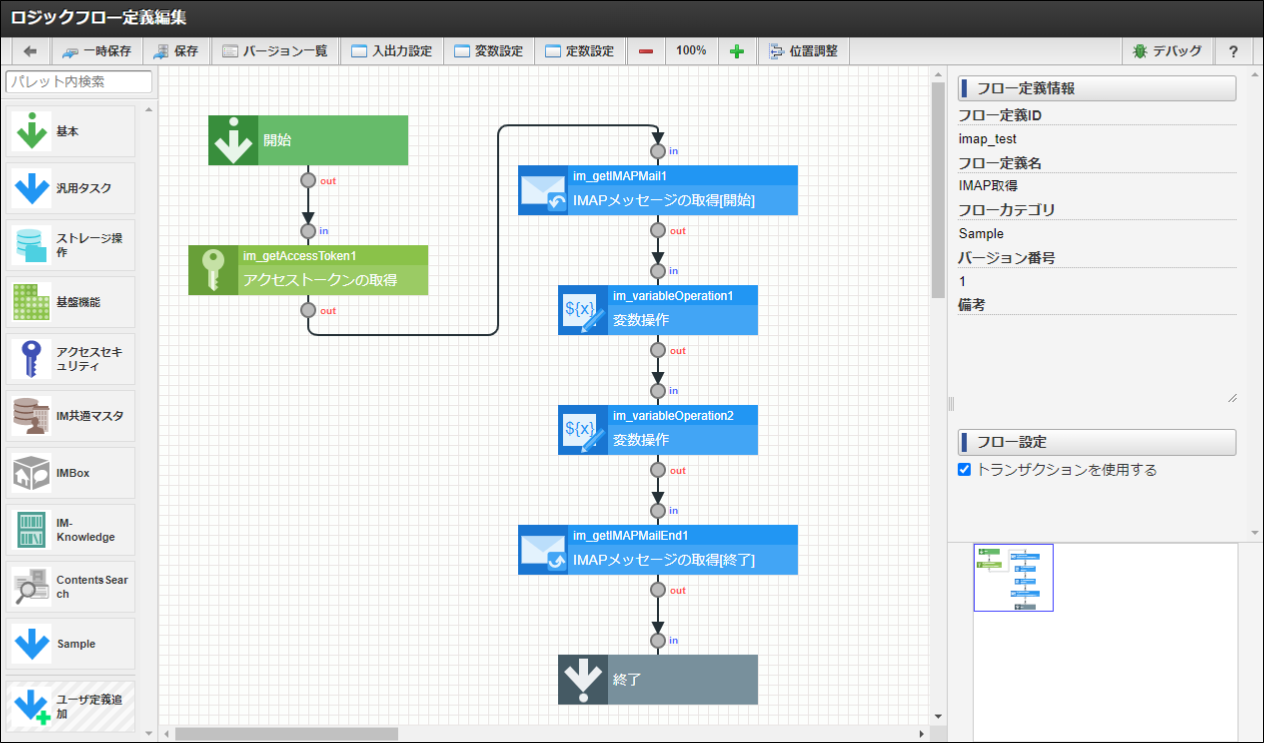 11.5.1.4. IM-LogicDesigner メール操作タスク(IMAPメッセージの取得)の設定例¶