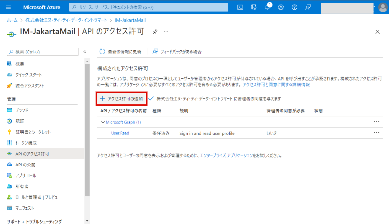 「アクセス許可の追加」をクリックします。
