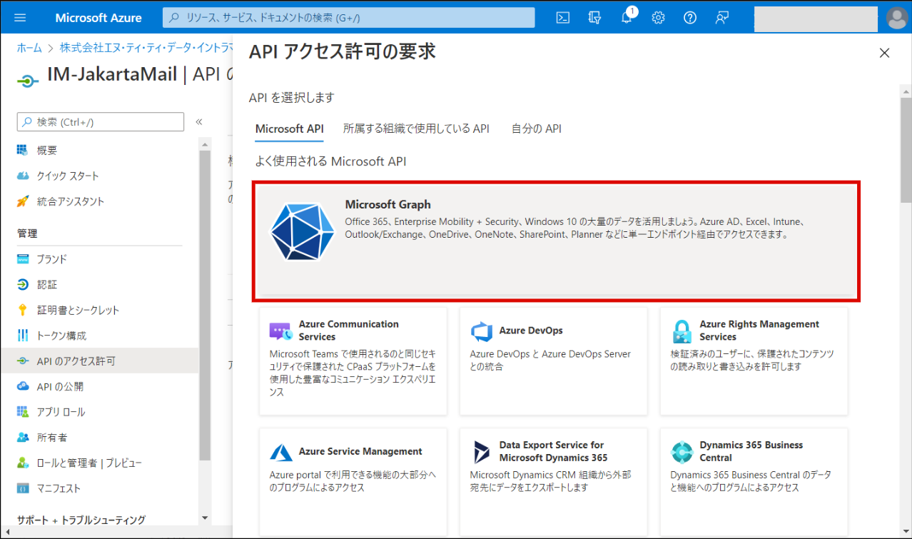 「 Microsoft Graph 」をクリックします。