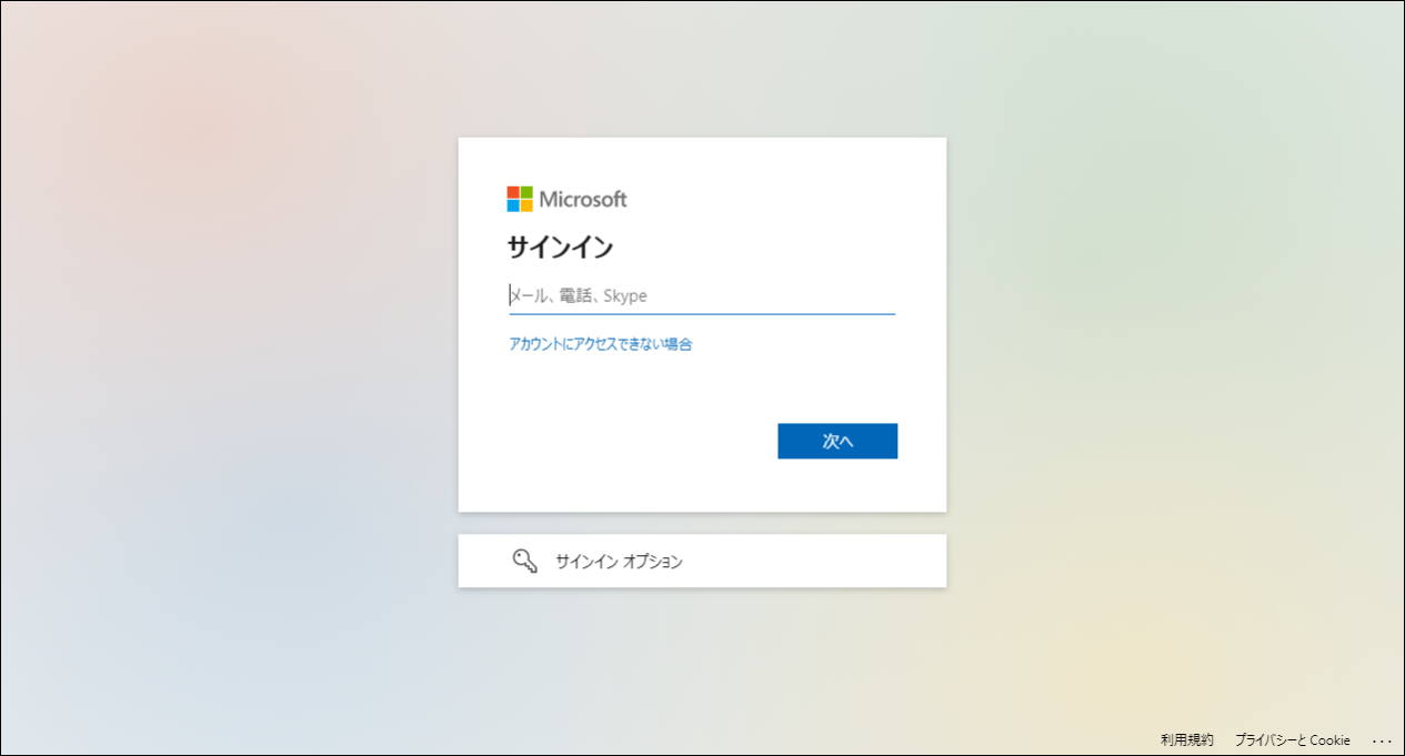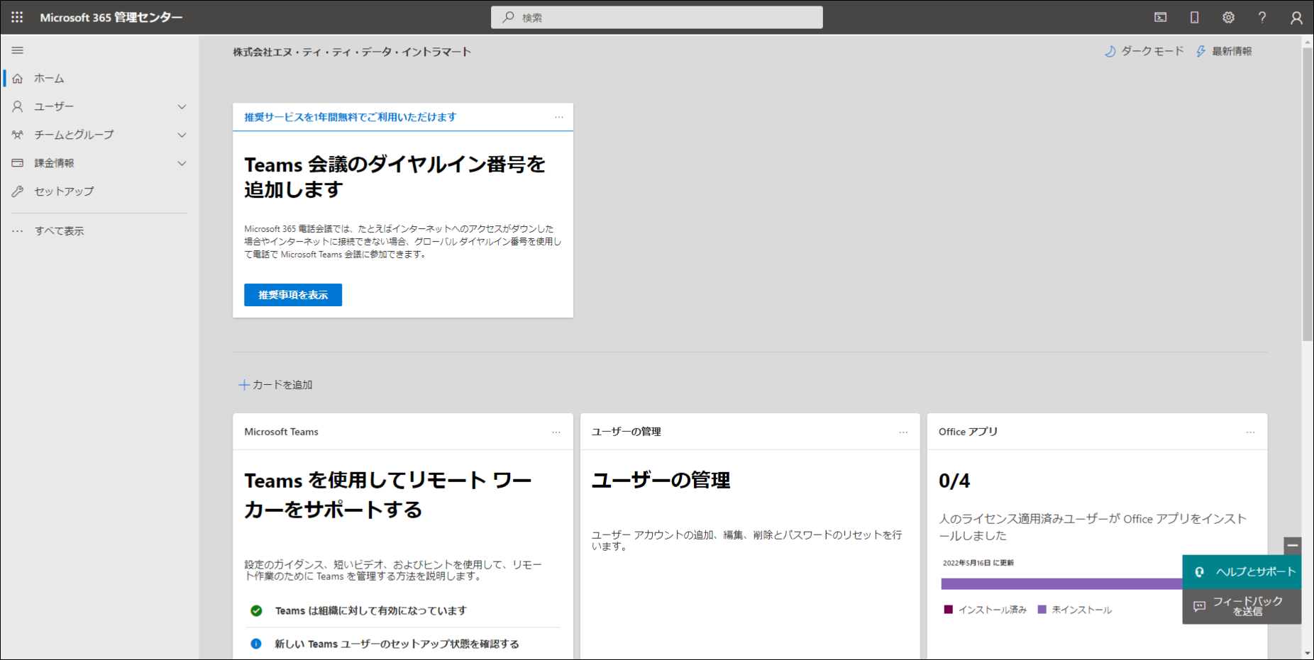 以下のURLから Microsoft 365 管理センター に Microsoft 365 管理者ユーザ でサインインします。