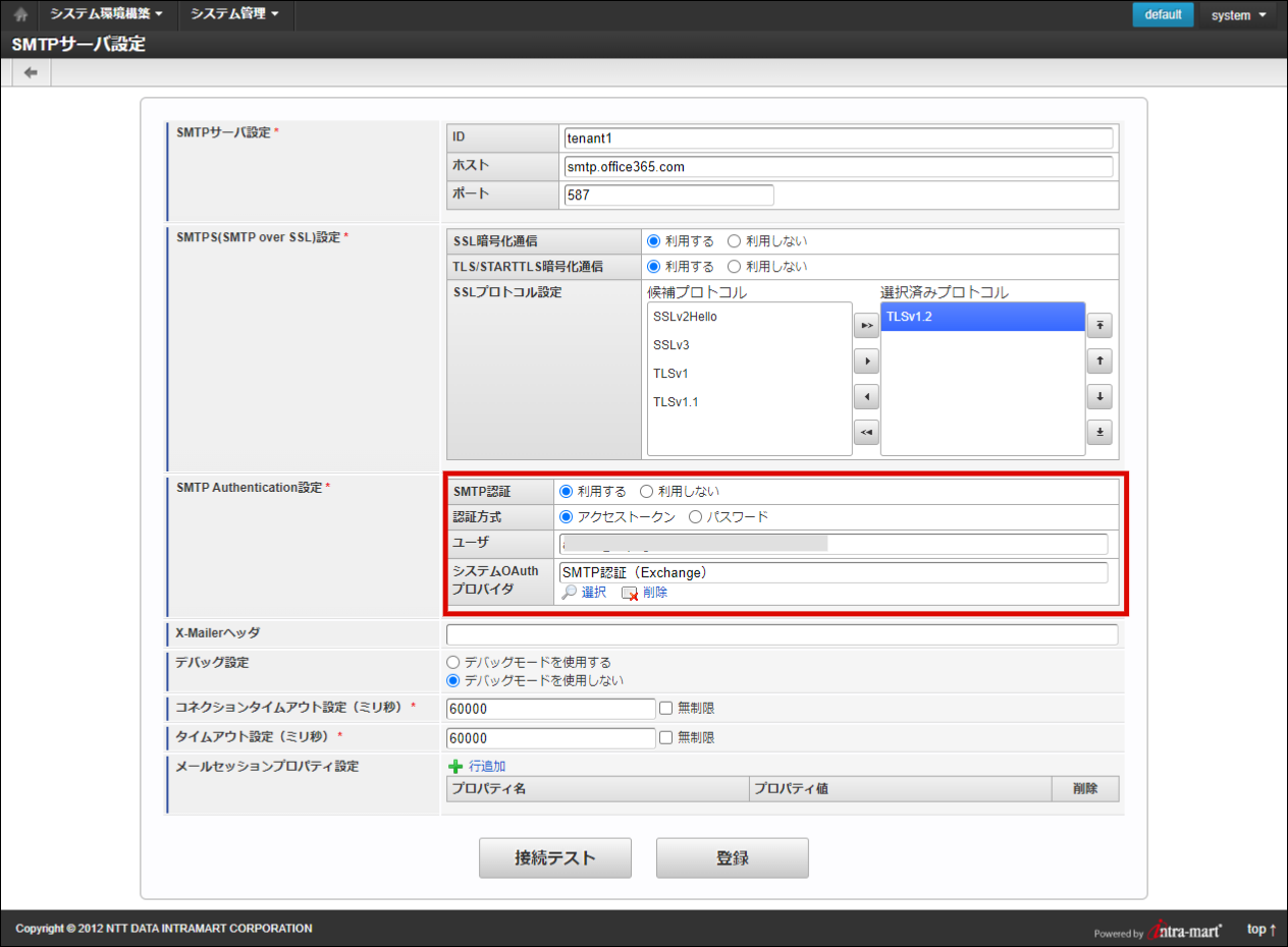 11.4.2.1.1. メールサーバに Exchange Online を利用する場合の設定¶