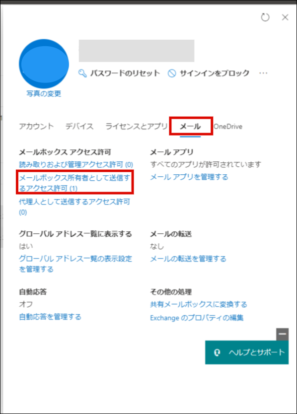 メールタブの「メールボックス所有者として送信するアクセス許可」をクリックします。