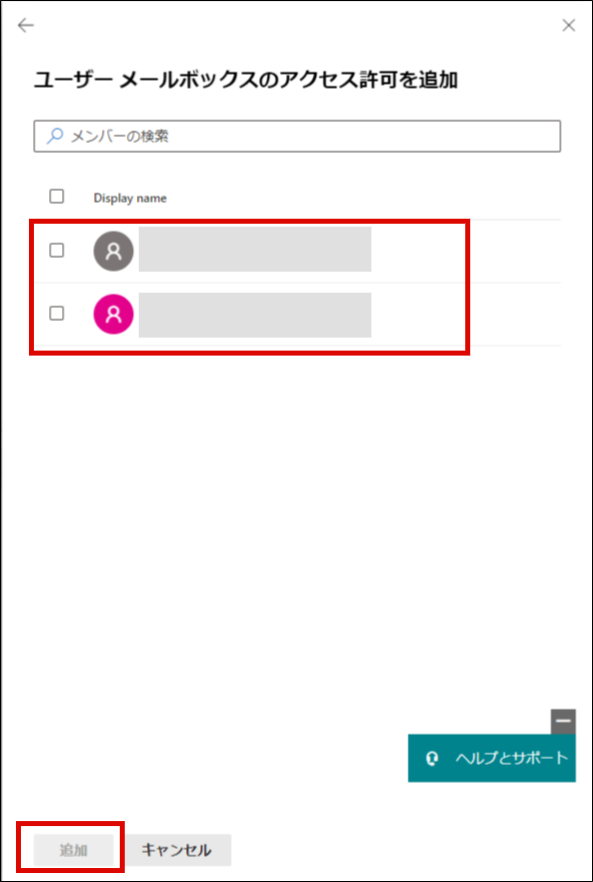SMTP サーバの認証ユーザをアクセス許可されるユーザとして選択し、「追加」をクリックします。