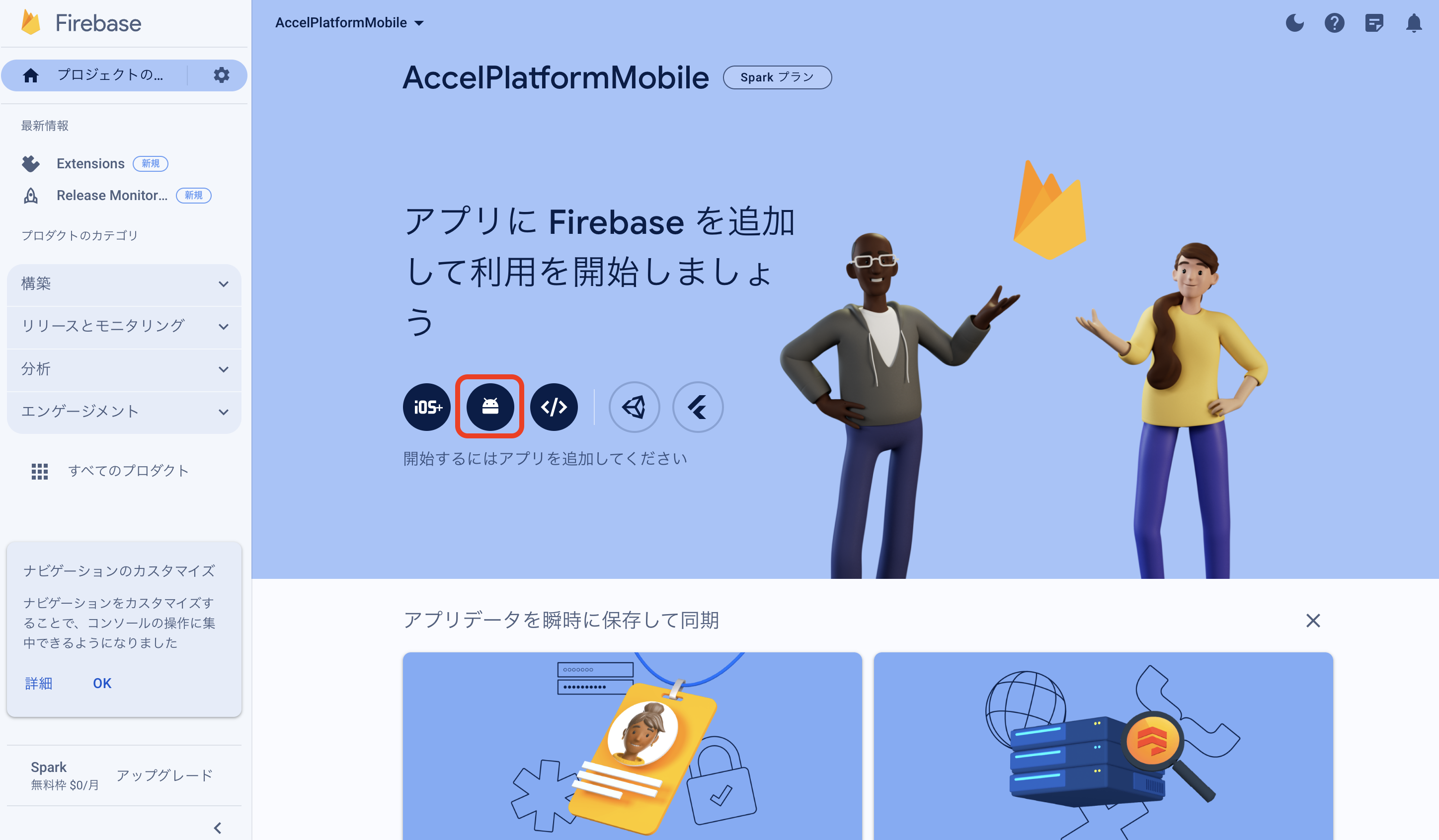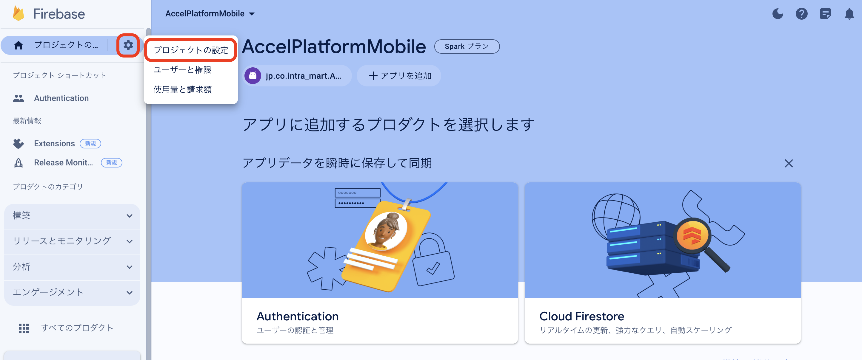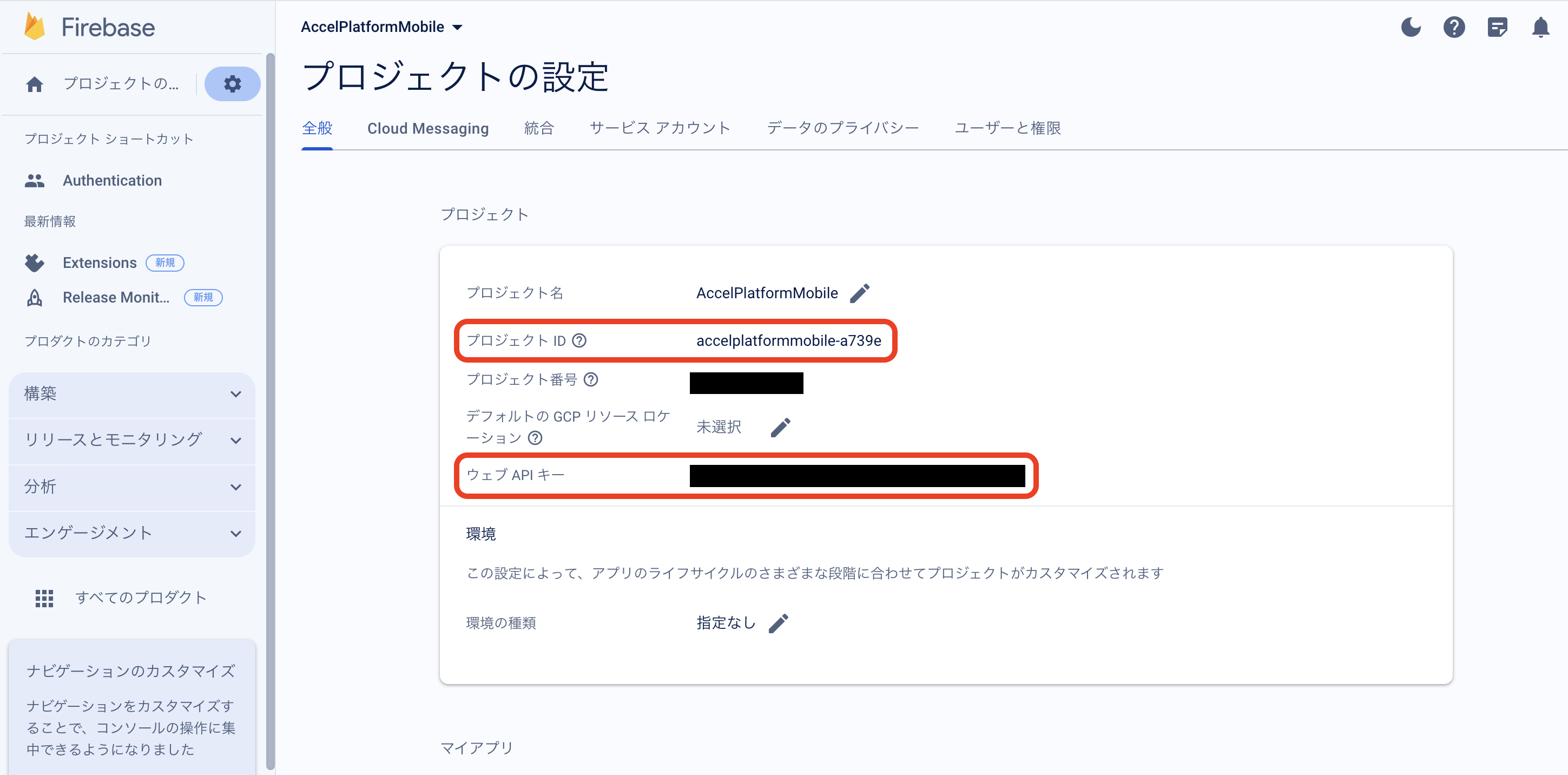 プロジェクトID等Firebase設定情報の確認方法は、 FCMの設定 を参照してください。