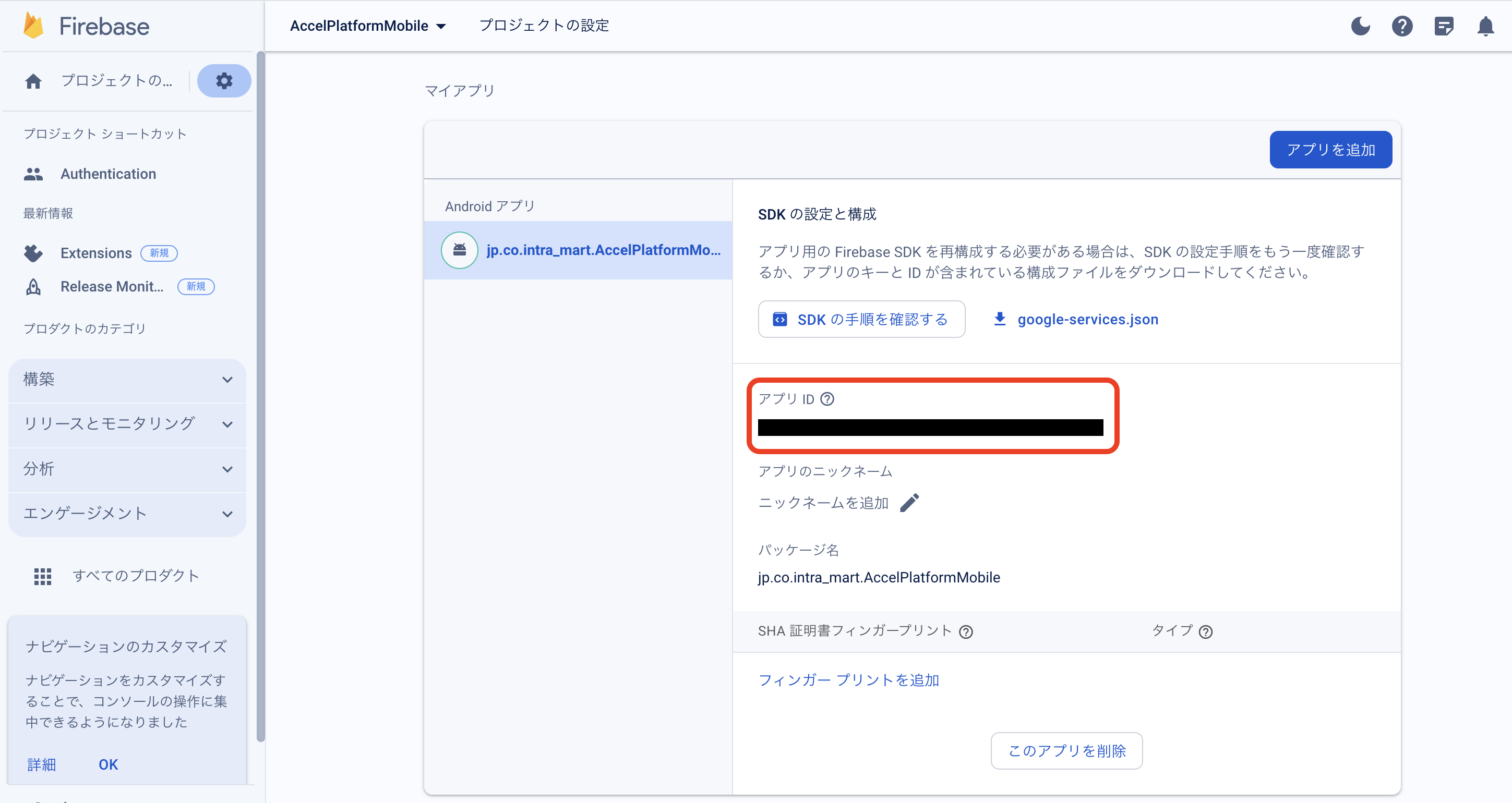 - AndroidアプリのアプリIDを設定してください。