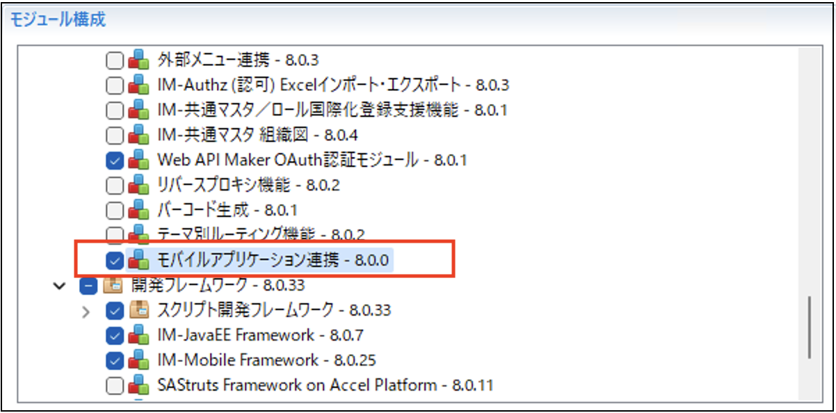 Accel Platform Mobile を利用するには、モバイルアプリケーション連携モジュールが必要です。注意