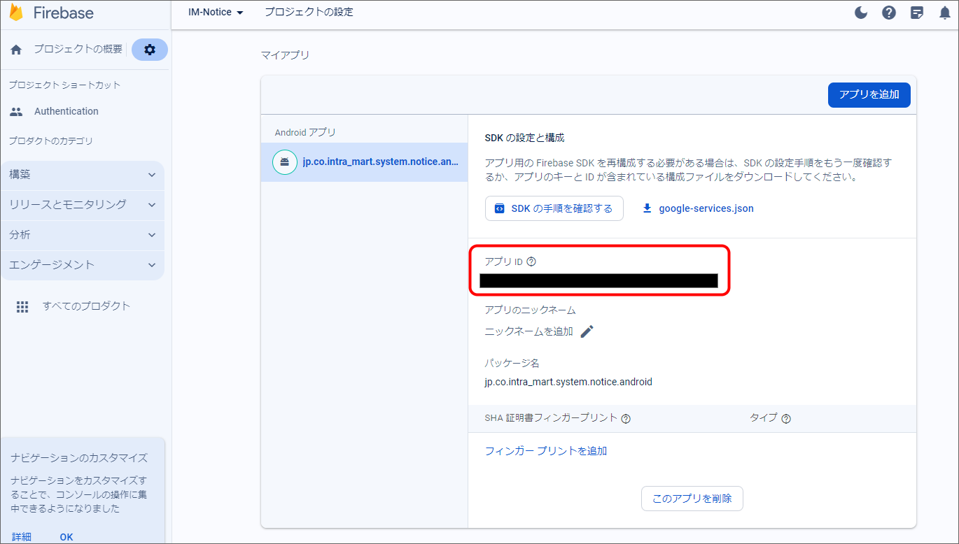 - AndroidアプリのアプリIDを設定してください。