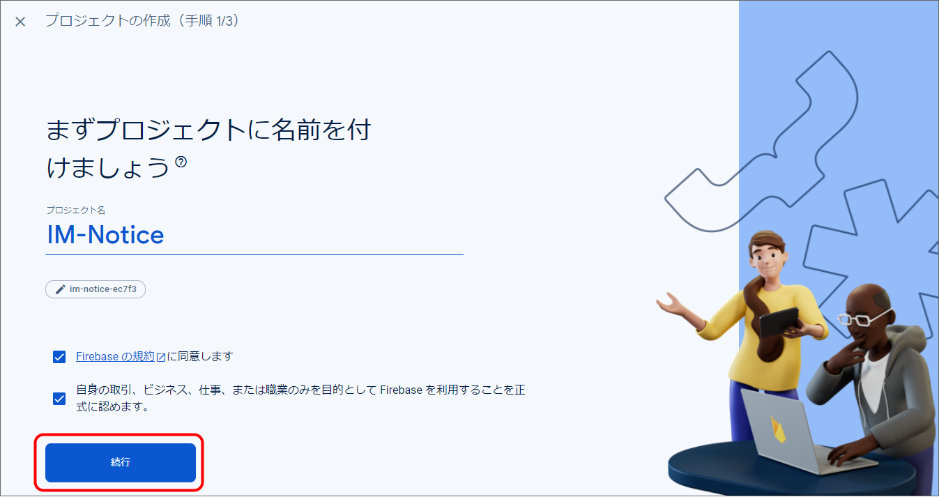 - FirebaseプロジェクトのプロジェクトIDを設定してください。