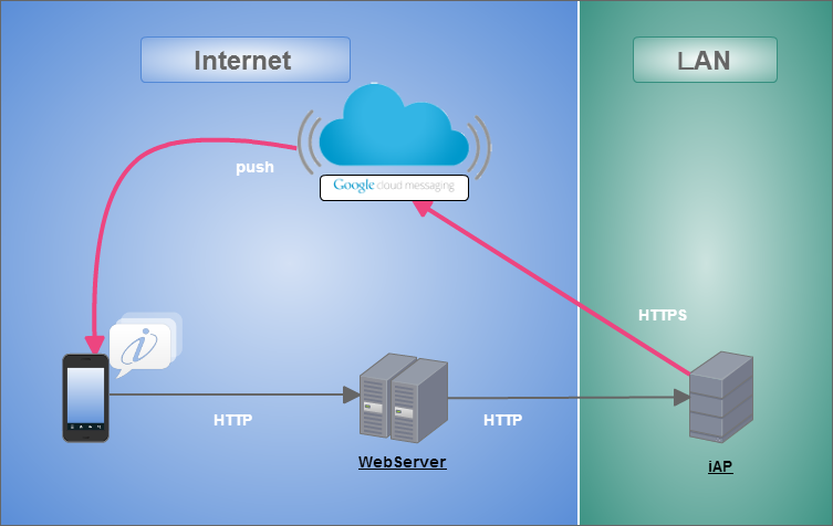 モバイル通知機能を使用するための設定を行います。 Androidへの通知を行うには、以下の2種類の構成が利用できます。