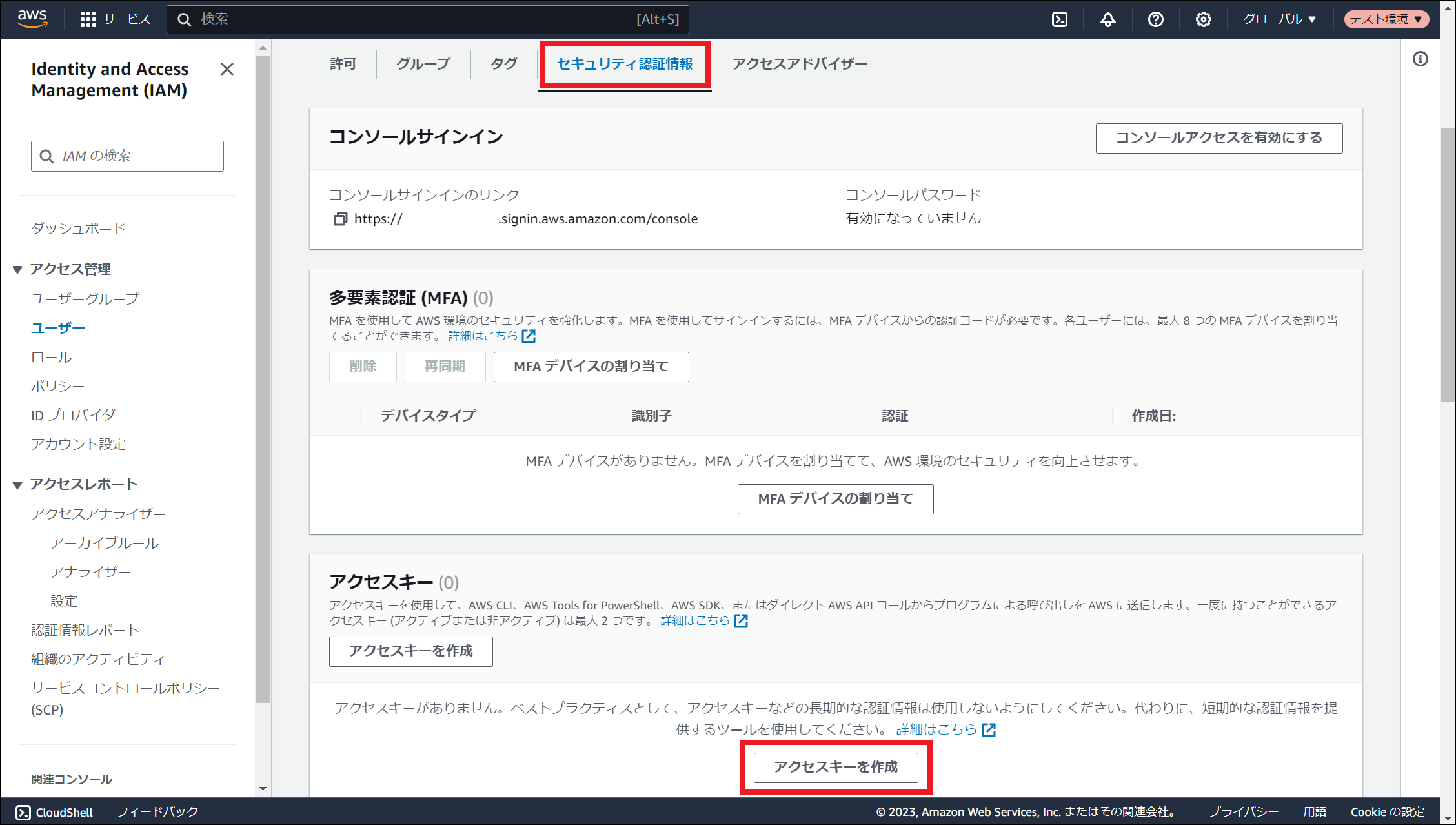 11.6.4.4. アクセスキーとシークレットキーの作成¶
