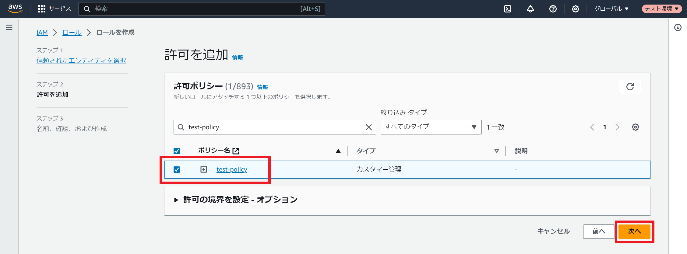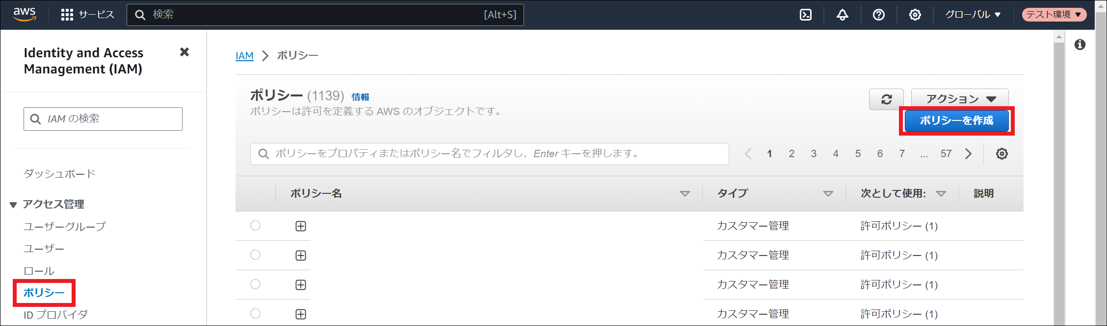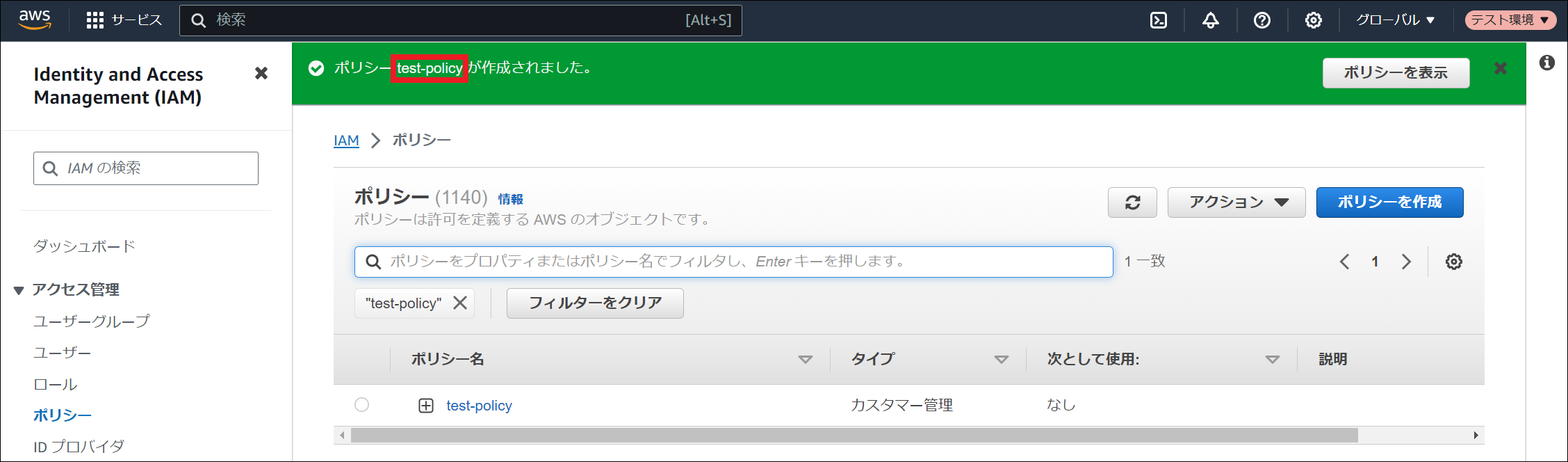 ポリシーの作成方法は、 ポリシーの作成 を参照してください。