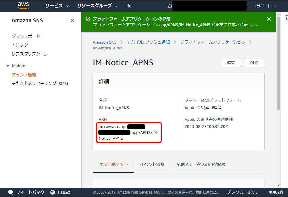 <platform-application-arn>arn:aws:sns:ap-northeast-1:XXXXXXXXXXXX:app/APNS/IM-Notice_APNS</platform-application-arn>