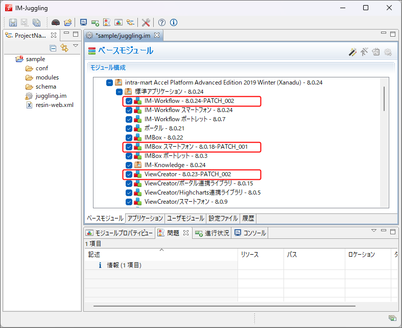 10.2.1.2. パッチを適用するモジュールの選択とWARファイルの作成¶