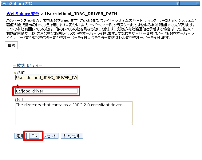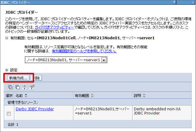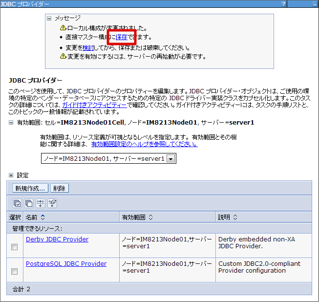 JDBC プロバイダーの設定を行います。