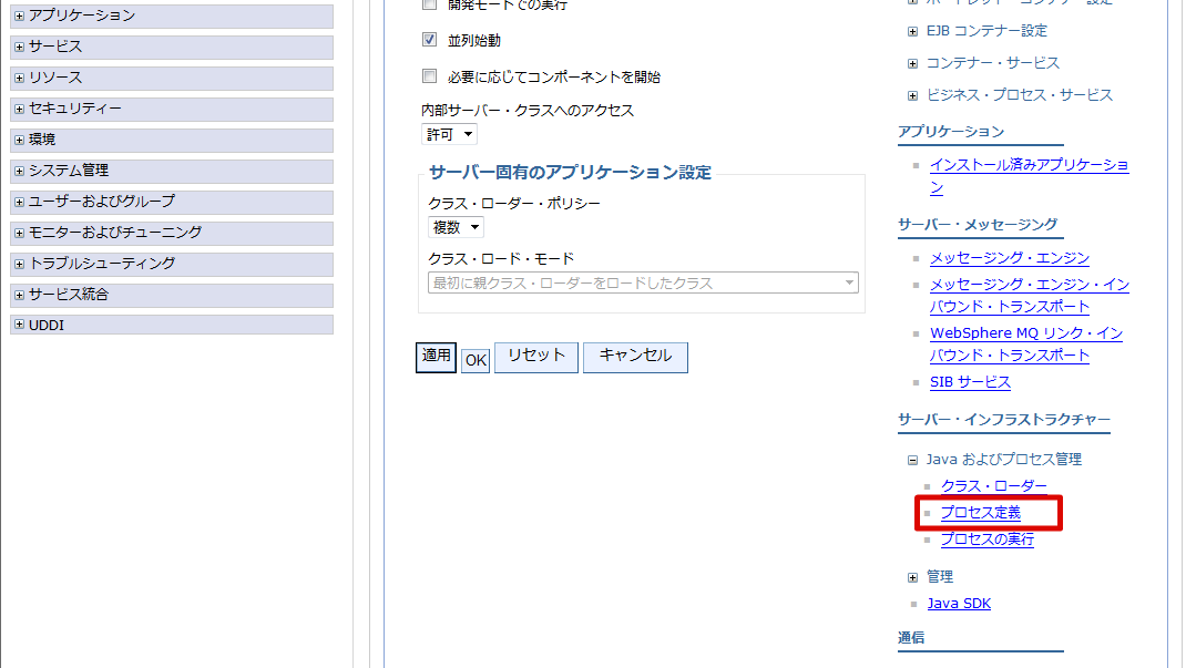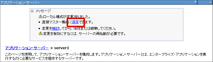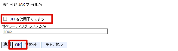 JITを有効にしている場合、正常に動作しない可能性があります。この場合はJITを無効にしてください。過去の事例として、スクリプト開発モデルで想定する型と違う型で処理されるなどの問題が確認されています。これらの現象は環境等に依存する場合もあり、事前に十分な検証を行い、JITの利用有無を判断してください。 [保存]をクリックします。これで、Java VM 引数の設定は終わりです。 WebSphere を再起動します。