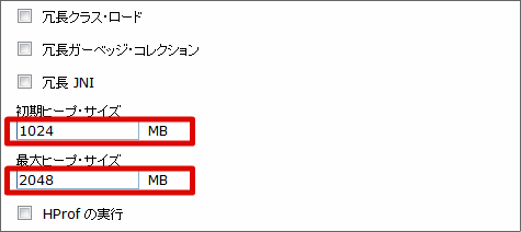 -XX:PermSize Permanent領域の初期値 -XX:MaxPermSize Permanent領域の最大値 -Duser.timezone Javaランタイム システムプロパティのタイムゾーン -Dfile.encoding Javaランタイム システムプロパティのファイルエンコーディング -Xgcpolicy:gencon ガーベッジ・コレクション・ポリシー -Dcom.ibm.crypto.provider.DoRSATypeChecking 秘密鍵による RSA 暗号化および公開鍵による復号化を許可するかどうかを指定します。カスタマーサクセスライセンスを利用する場合は、false を指定してください。下記ではPermanent領域の初期値に512MB、最大値に512MBを設定しています。