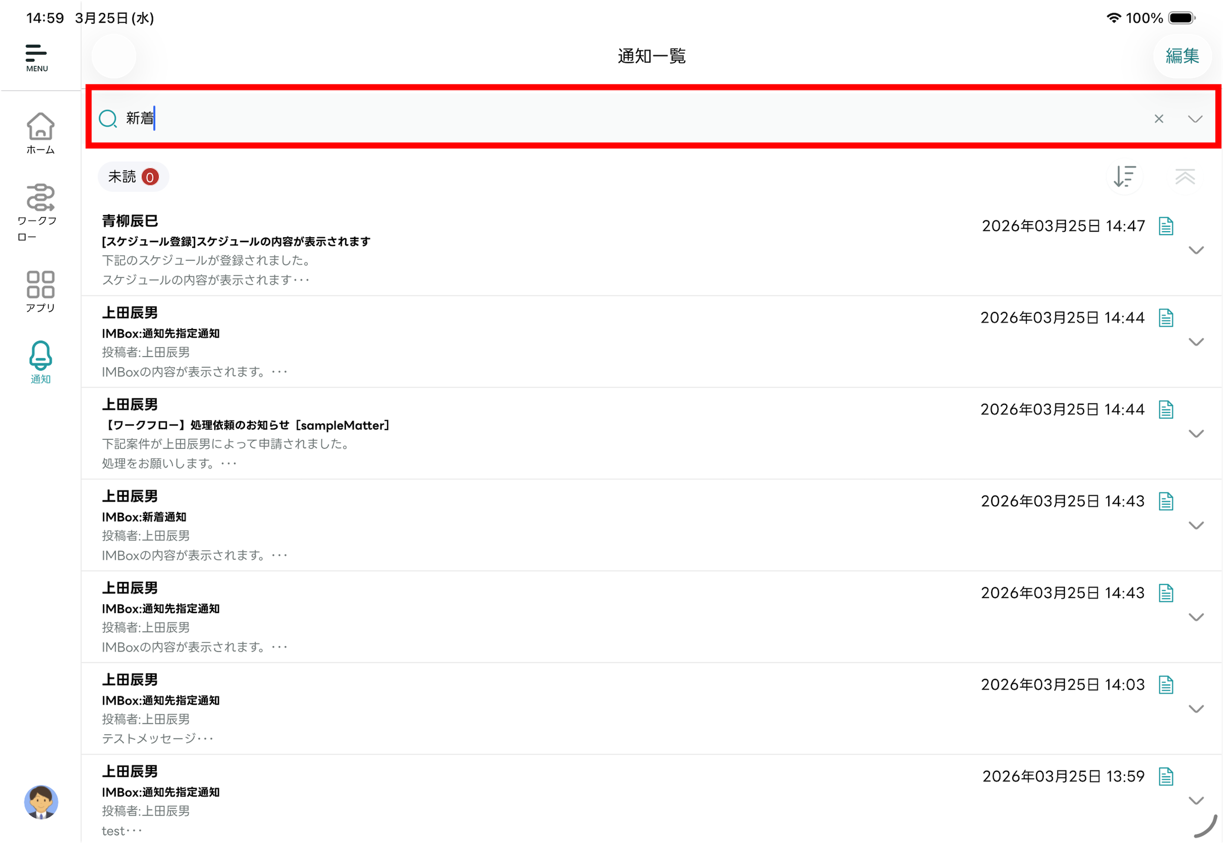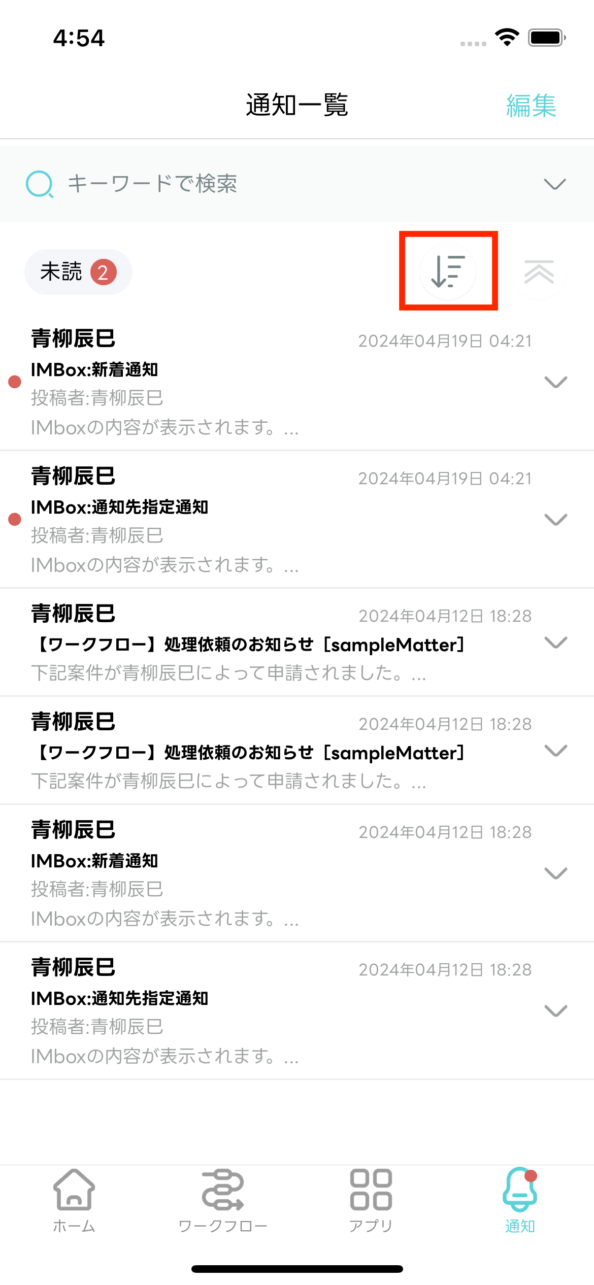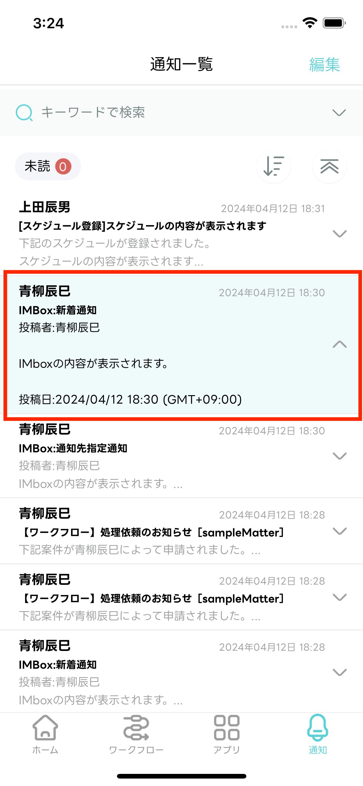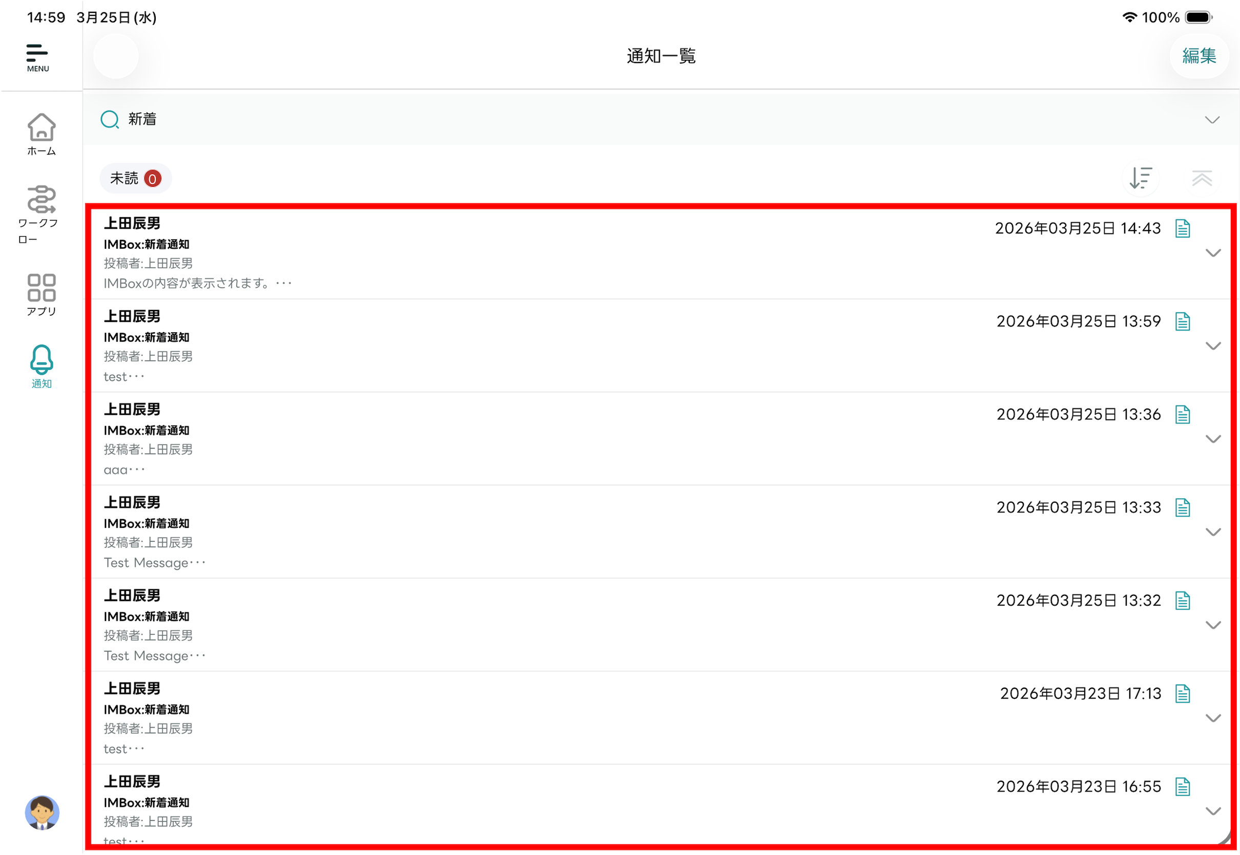 - 編集モードが終了し「通知一覧」画面に戻ります。選択した通知メッセージが既読化されます。
