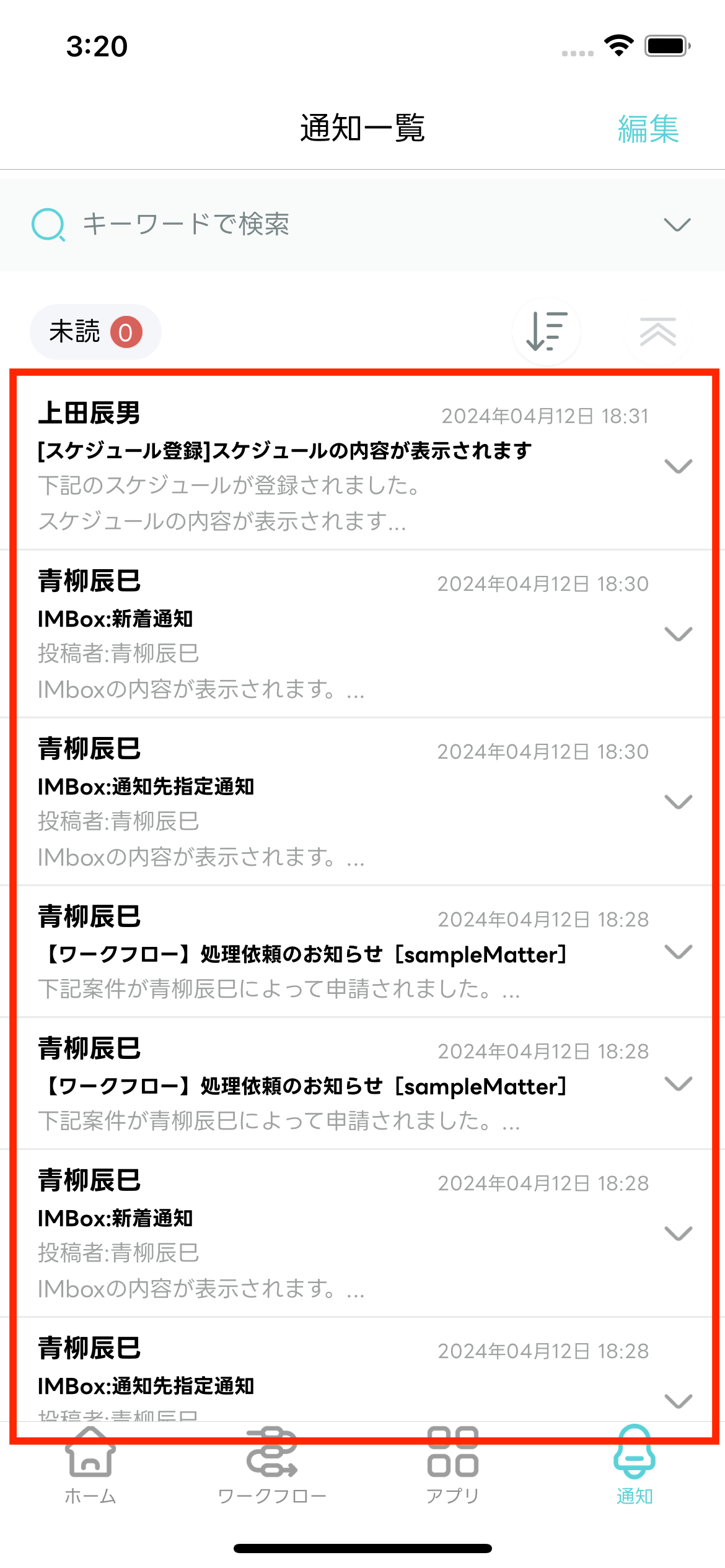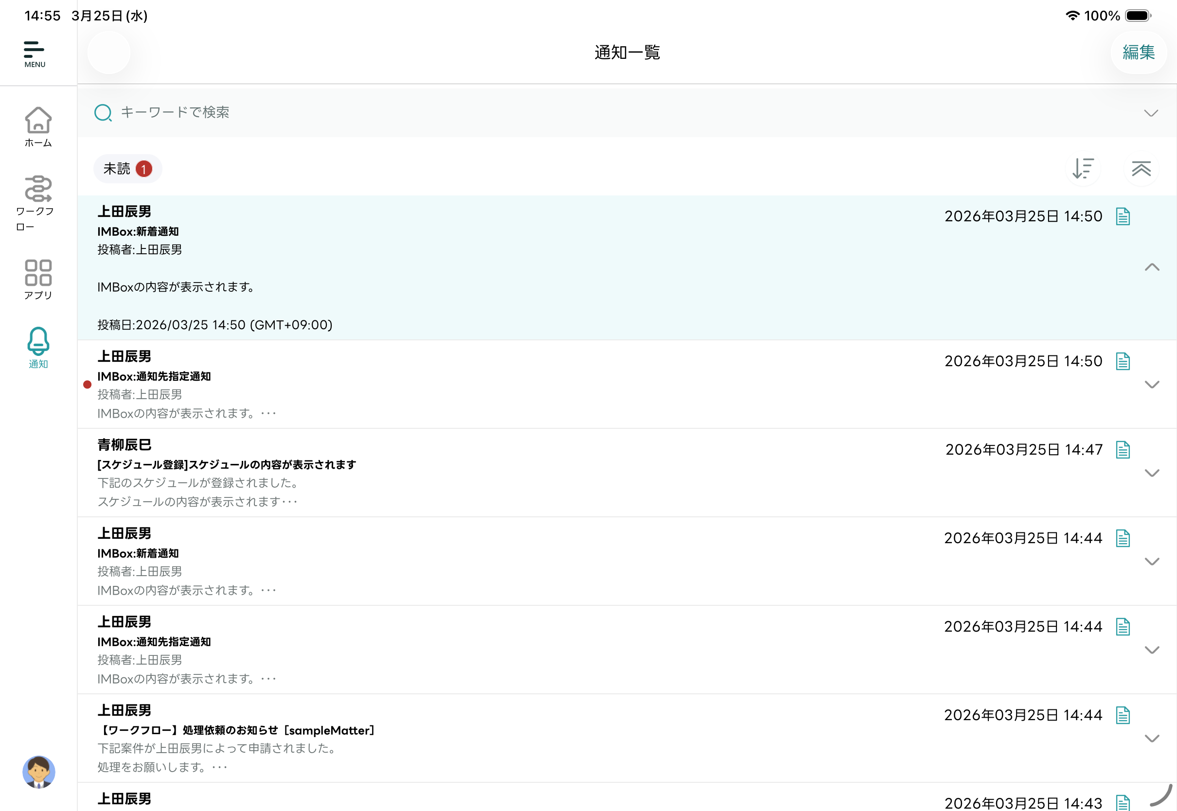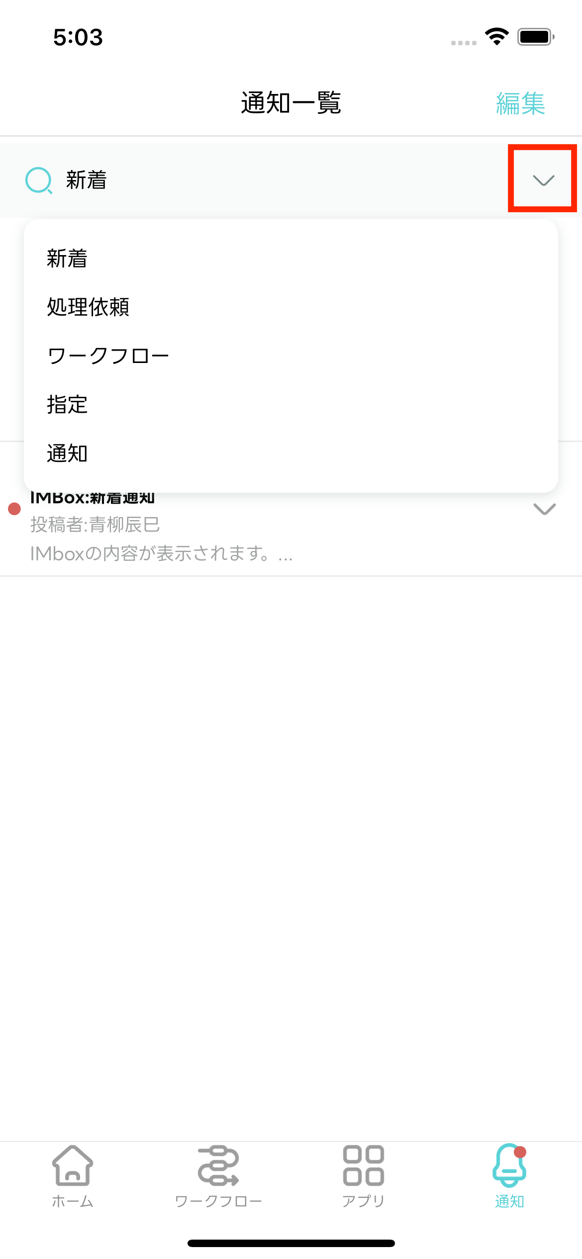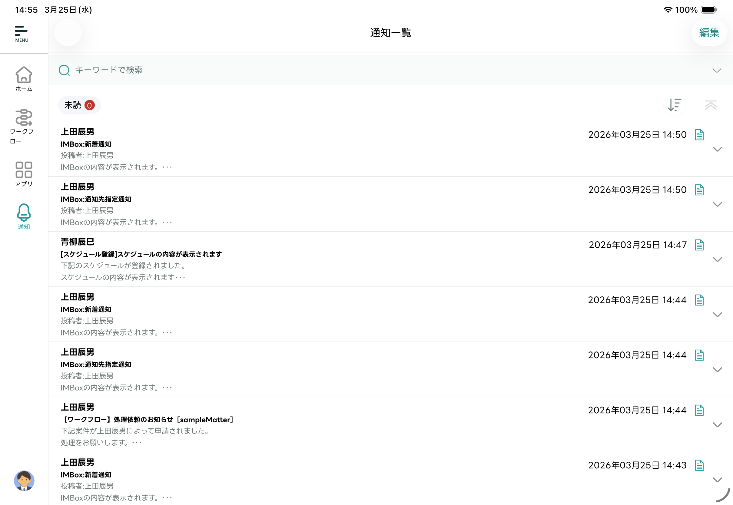 - 編集モードが終了し「通知一覧」画面に戻ります。選択した通知メッセージが既読化されます。