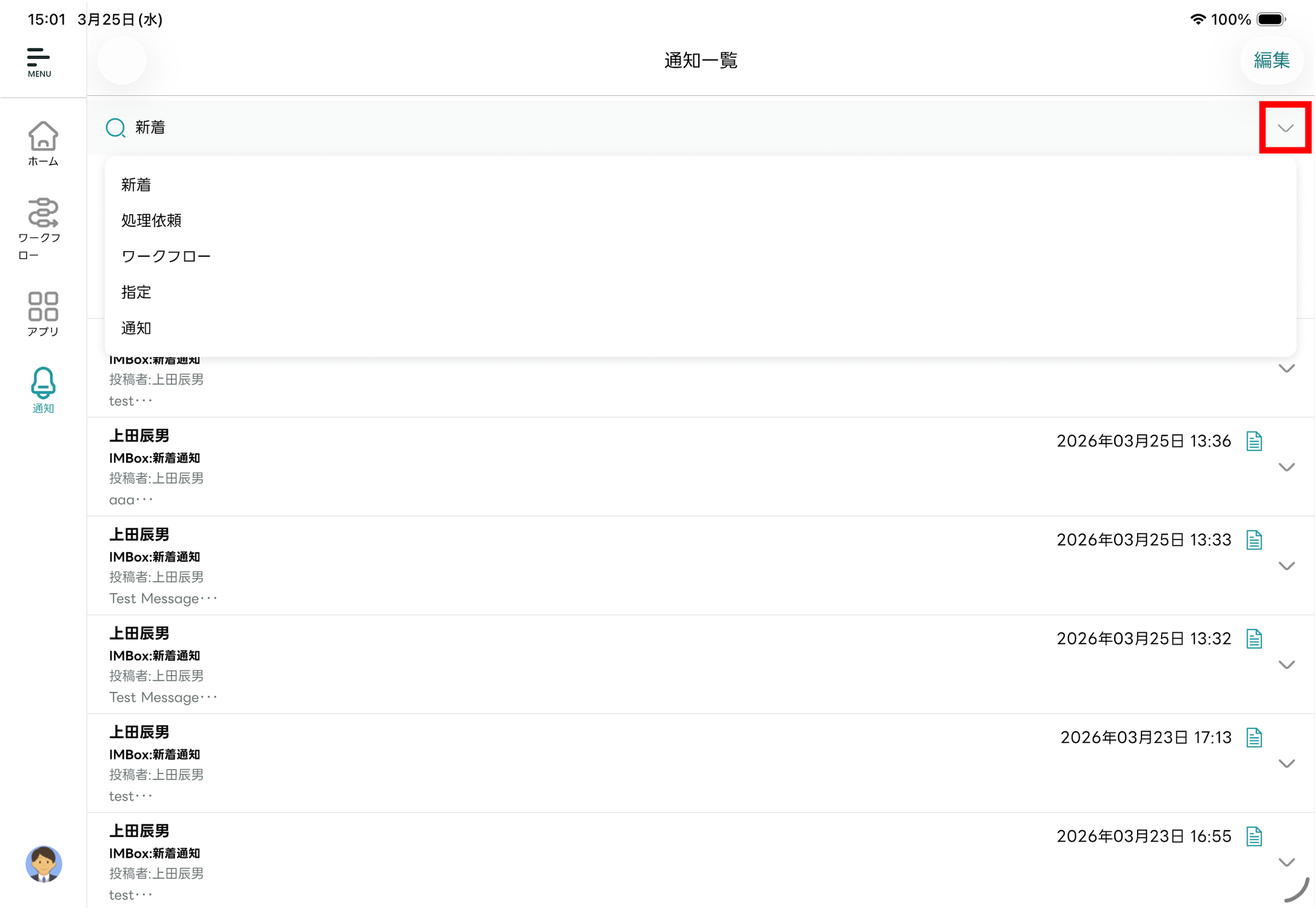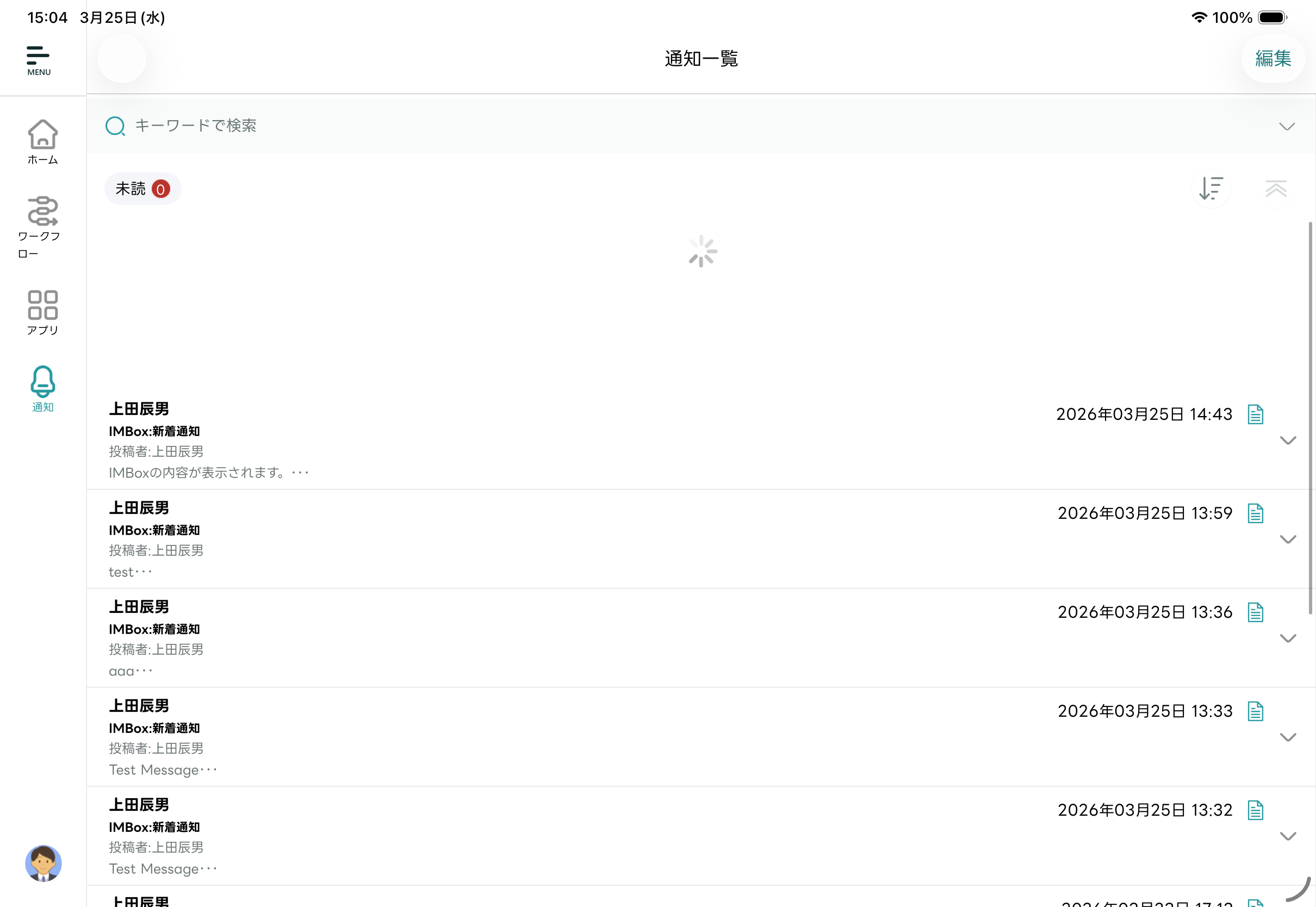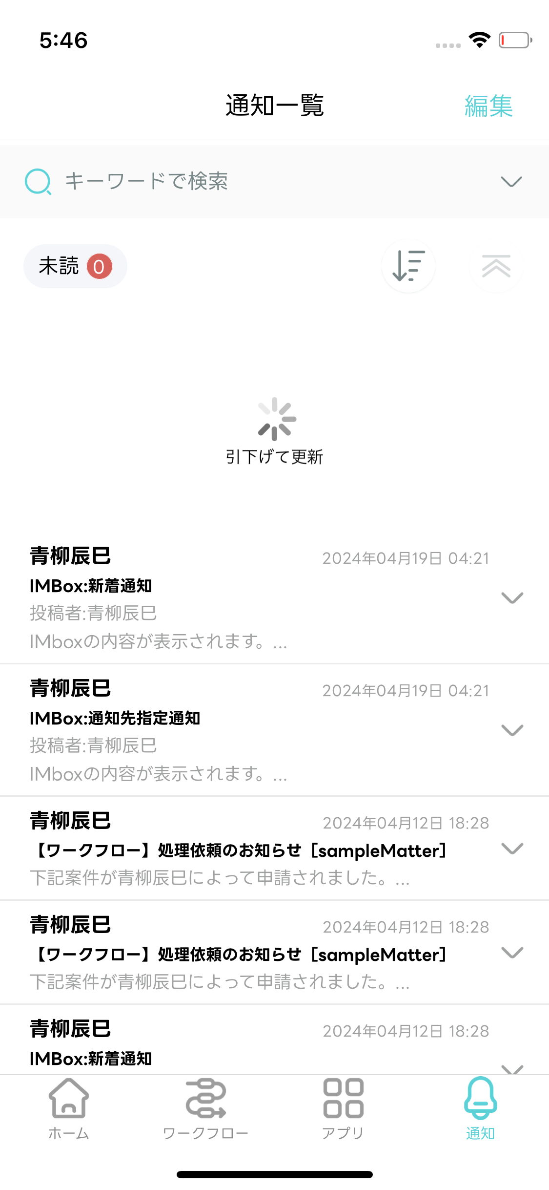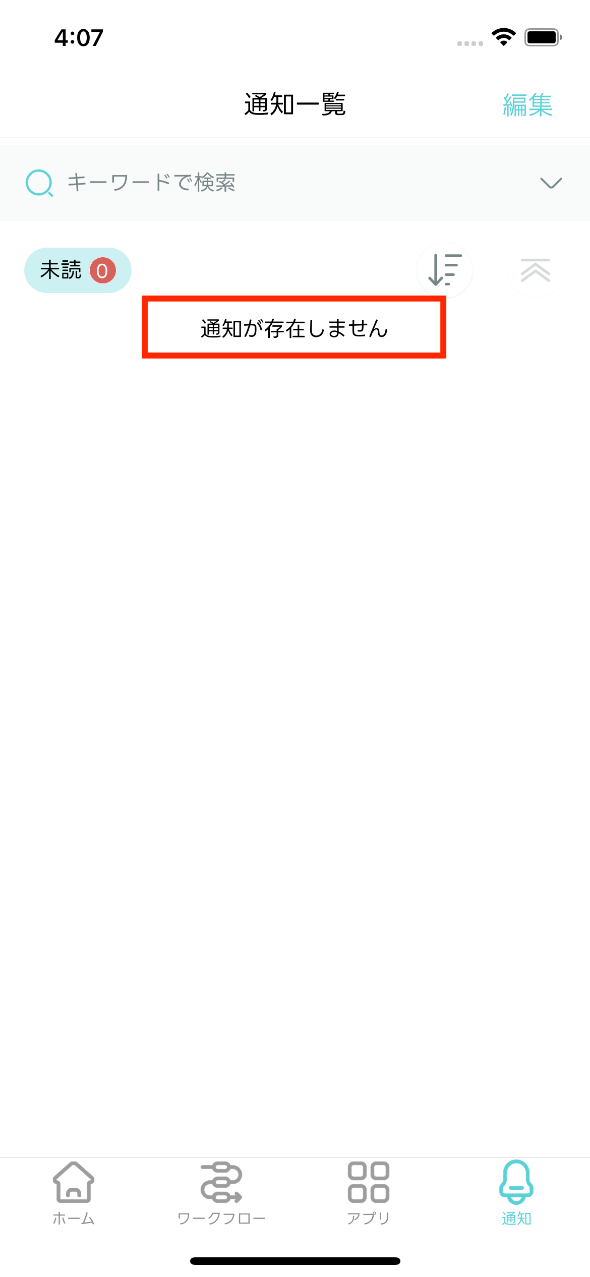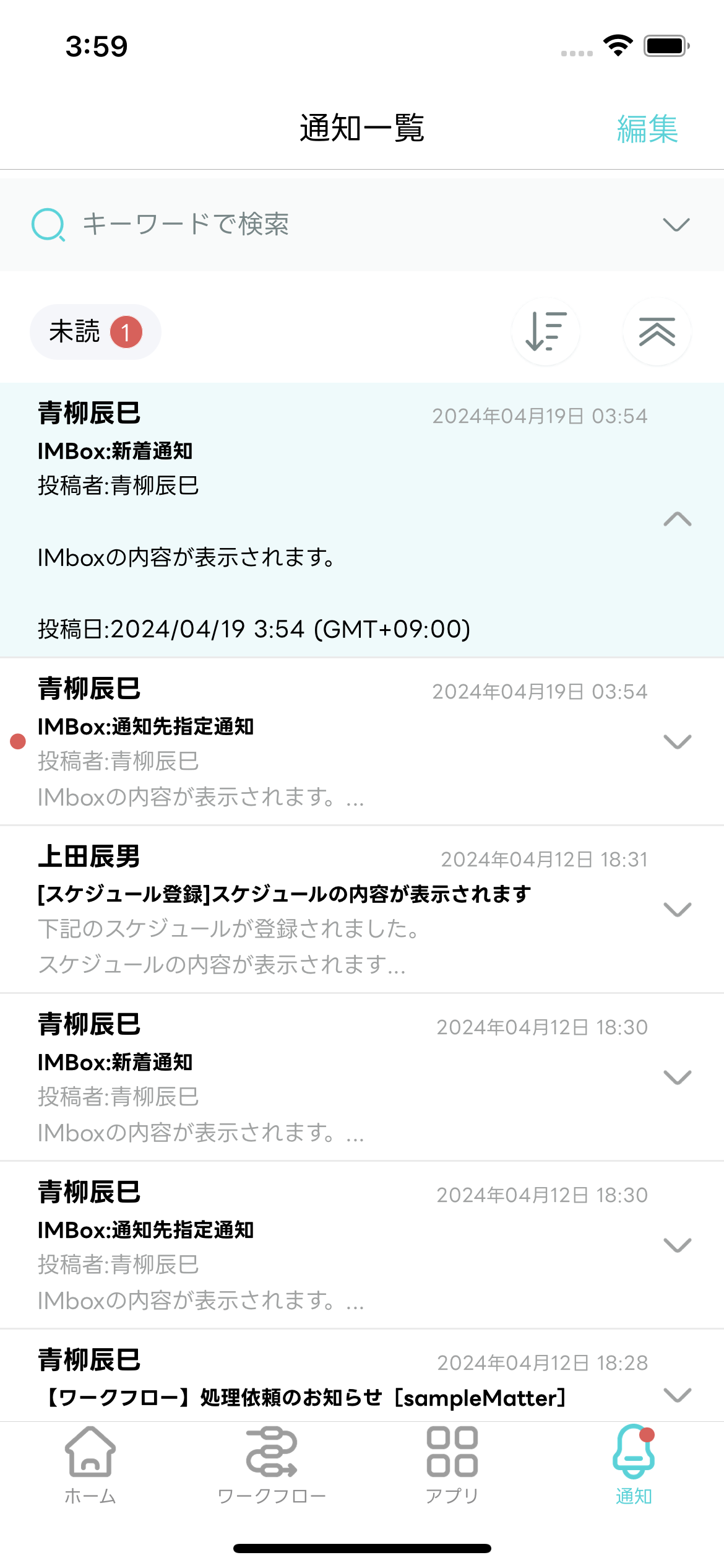 - 編集モードが終了し「通知一覧」画面に戻ります。選択した通知メッセージが既読化されます。