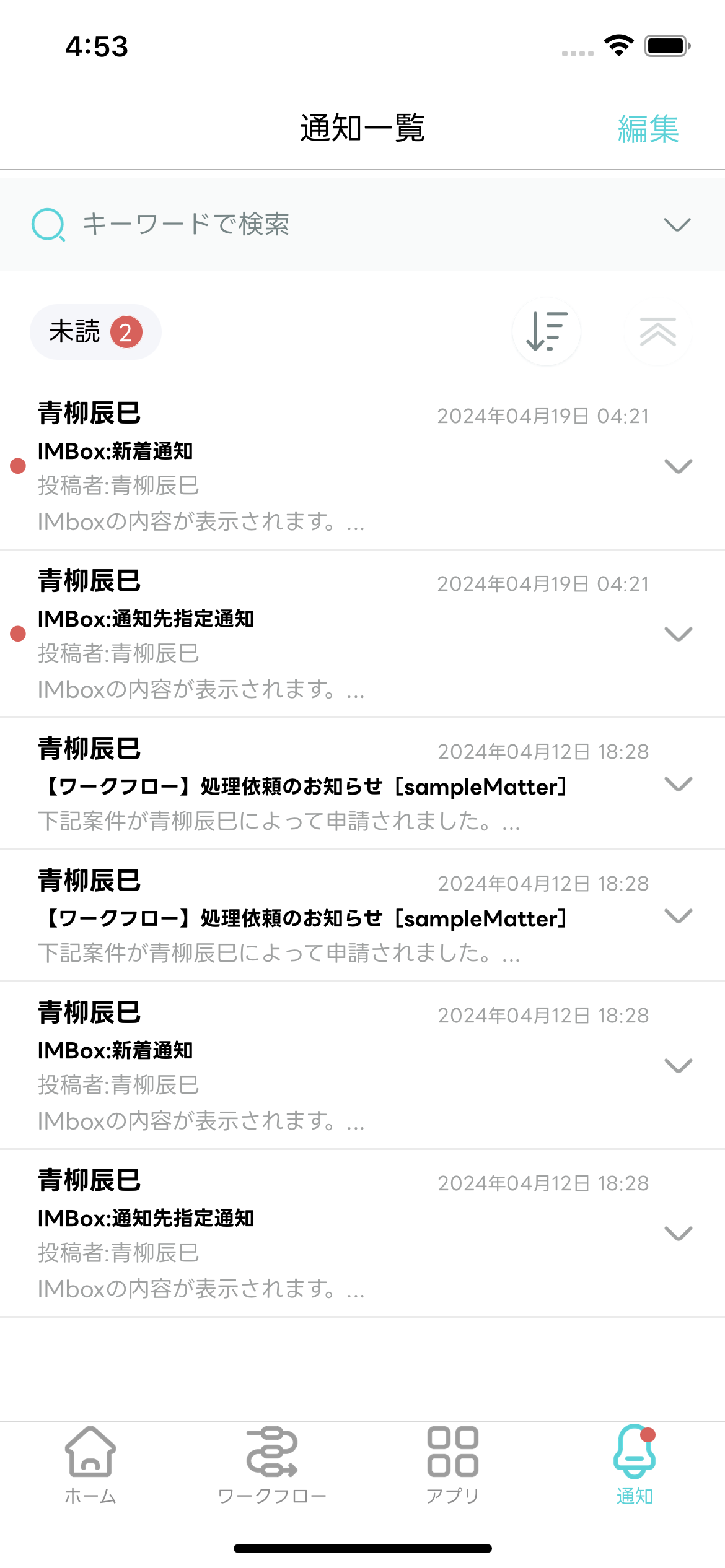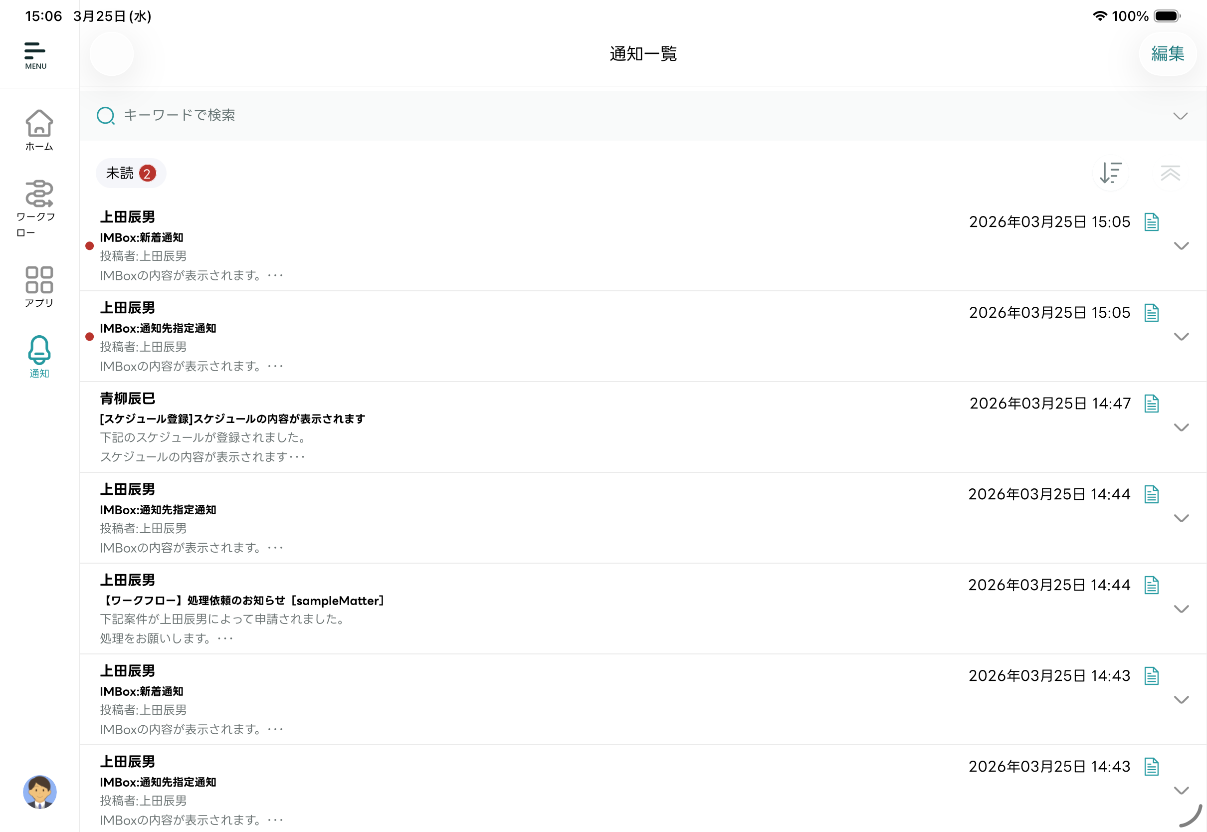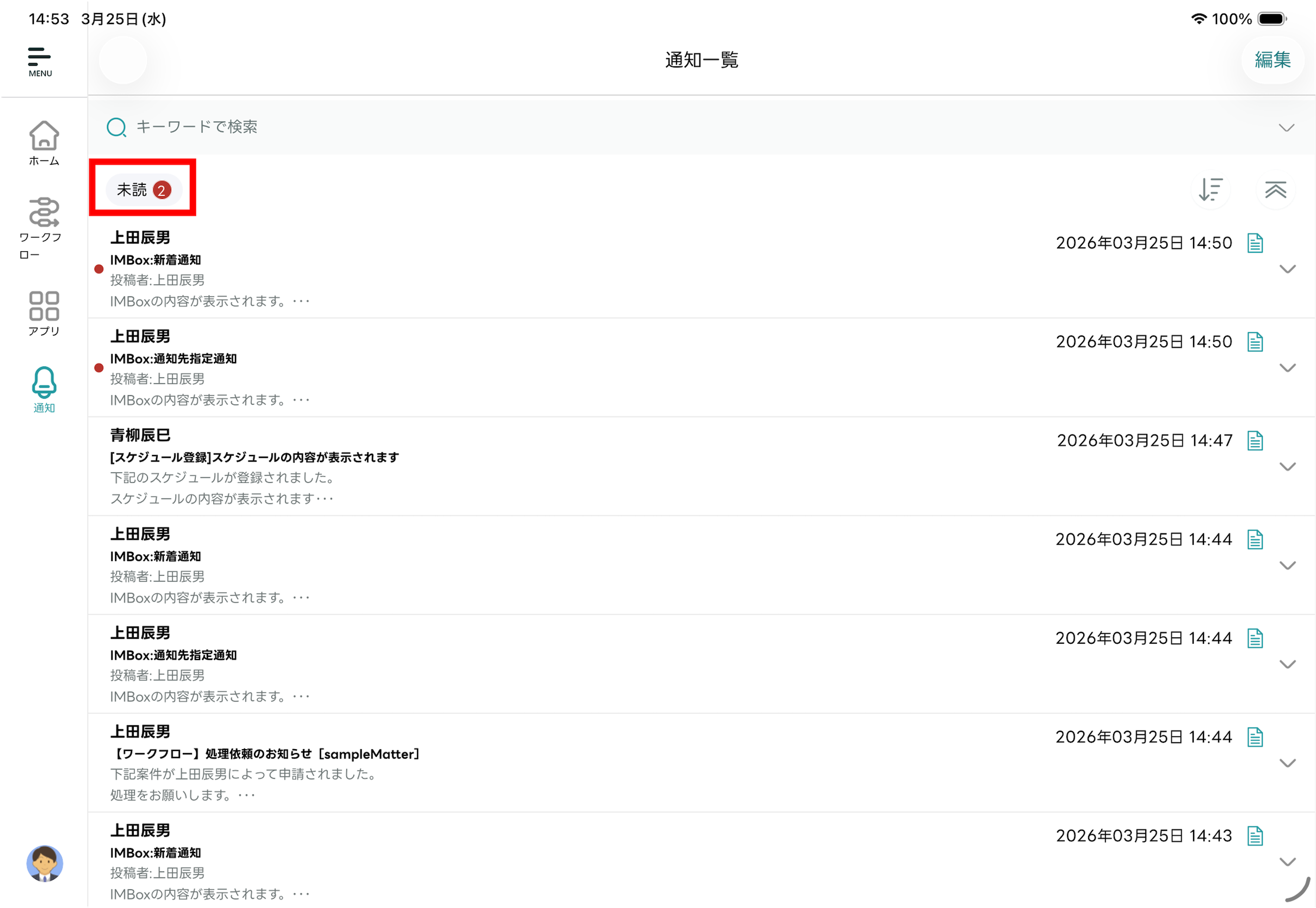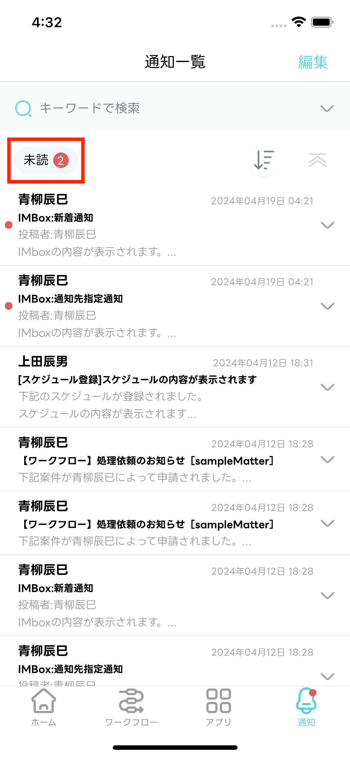 - 受信した通知を一覧で確認できます。