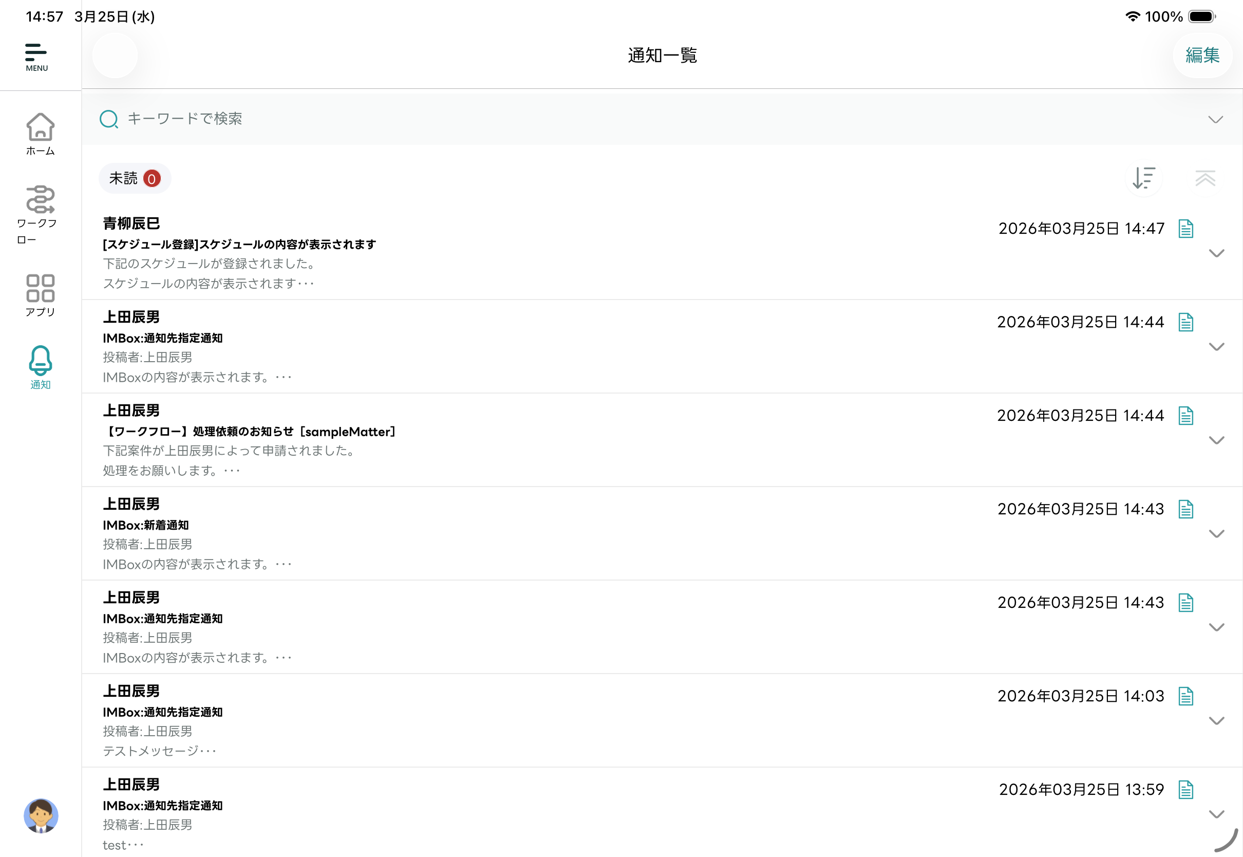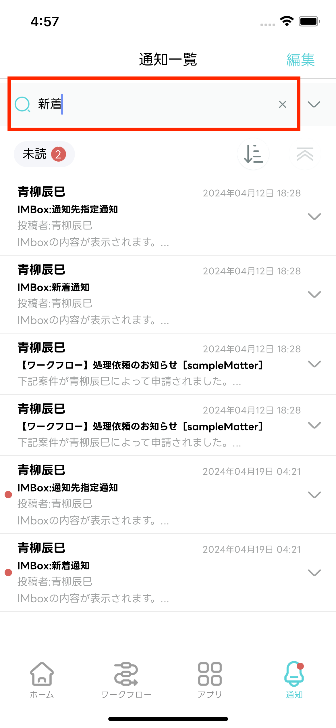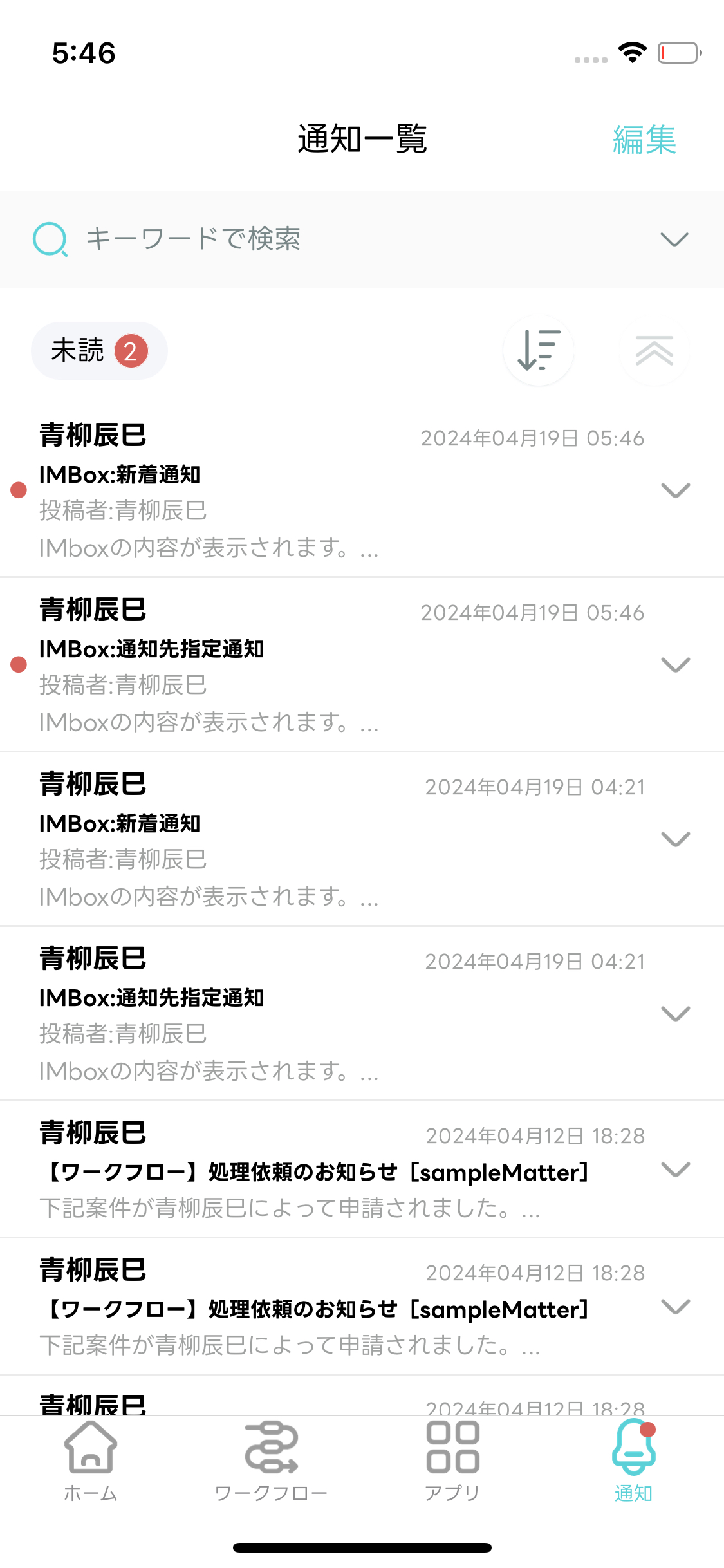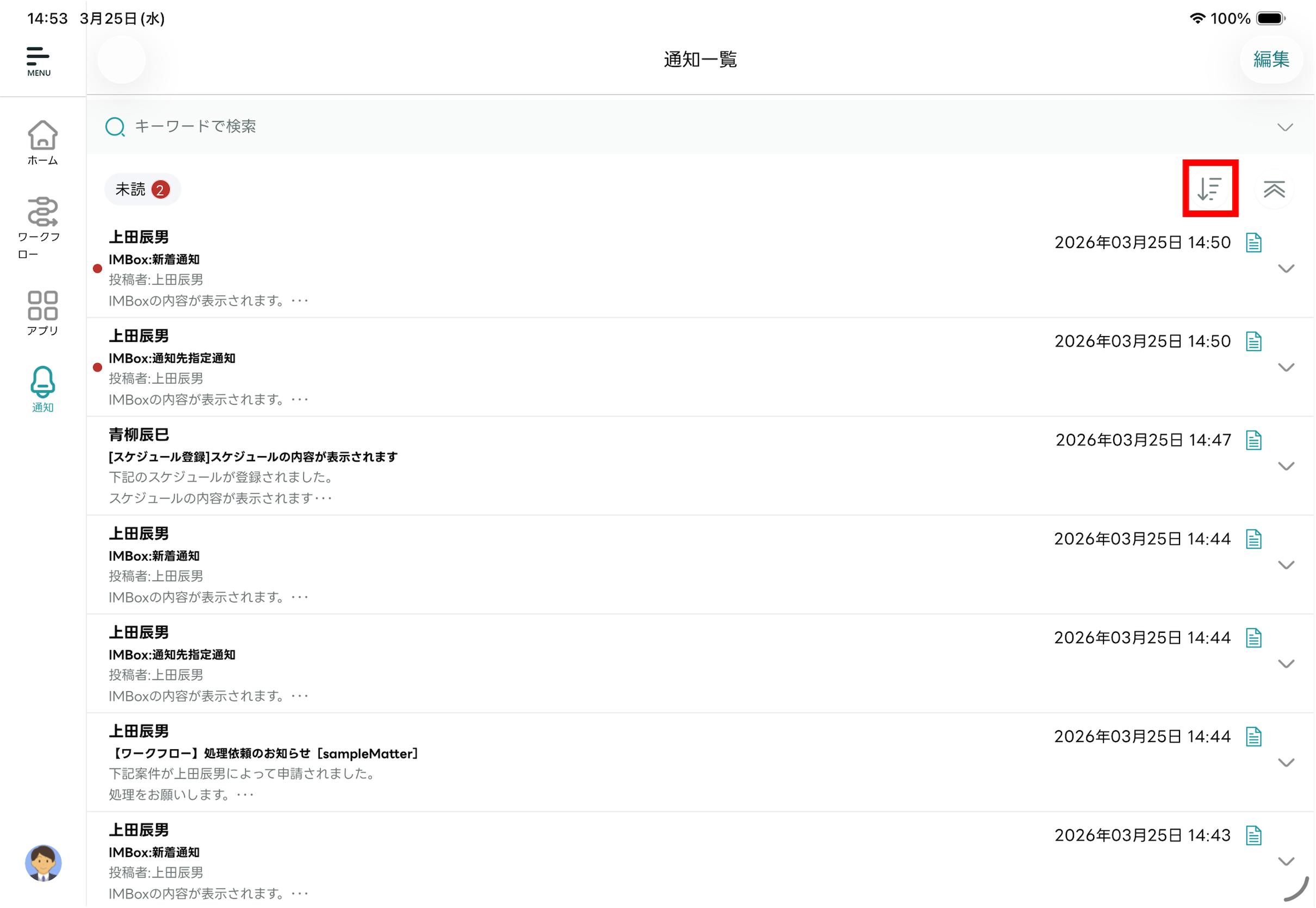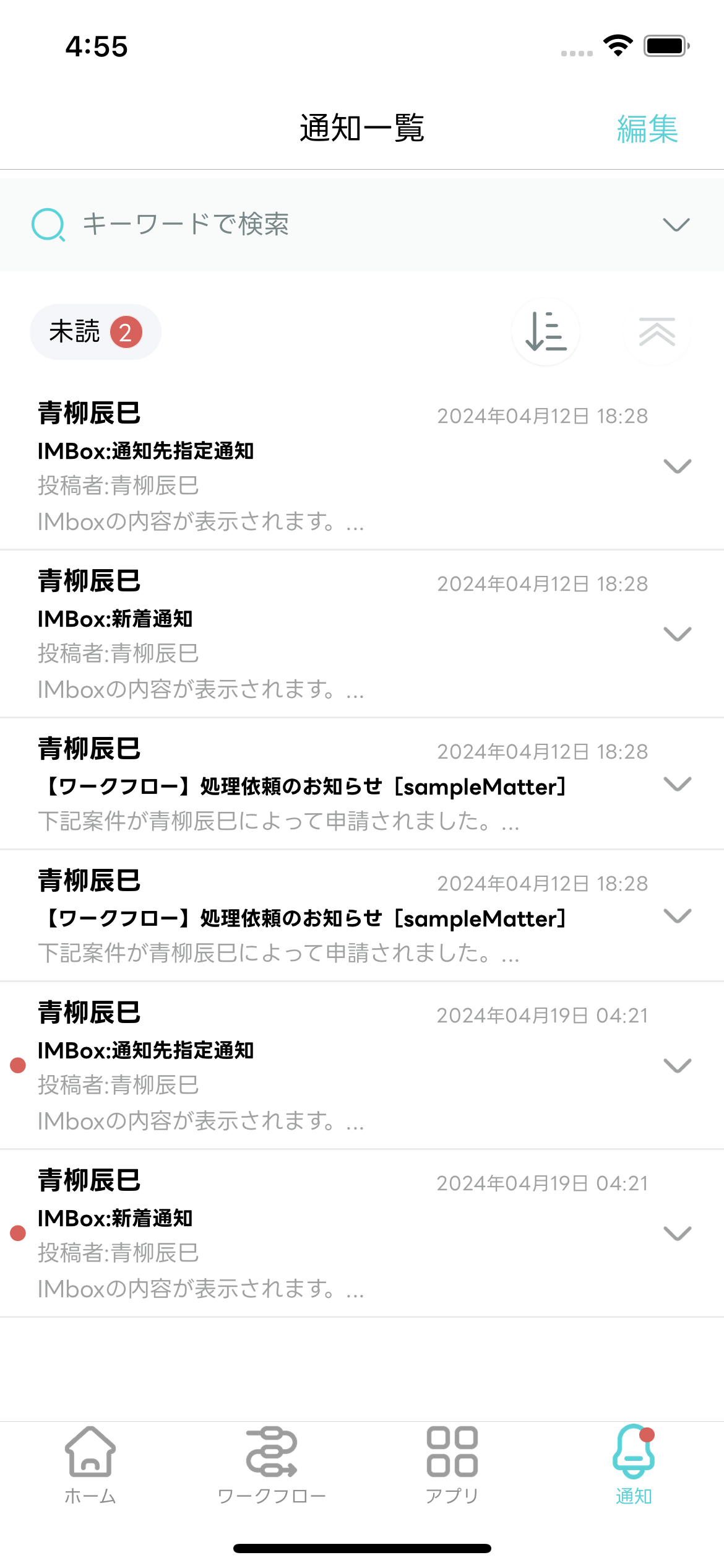 - 受信した通知を一覧で確認できます。