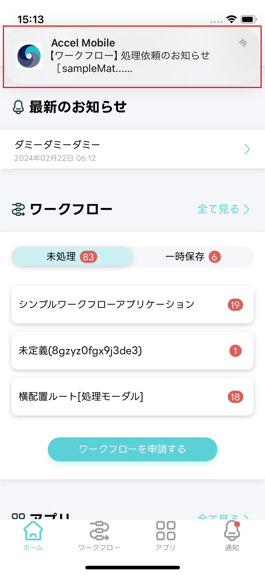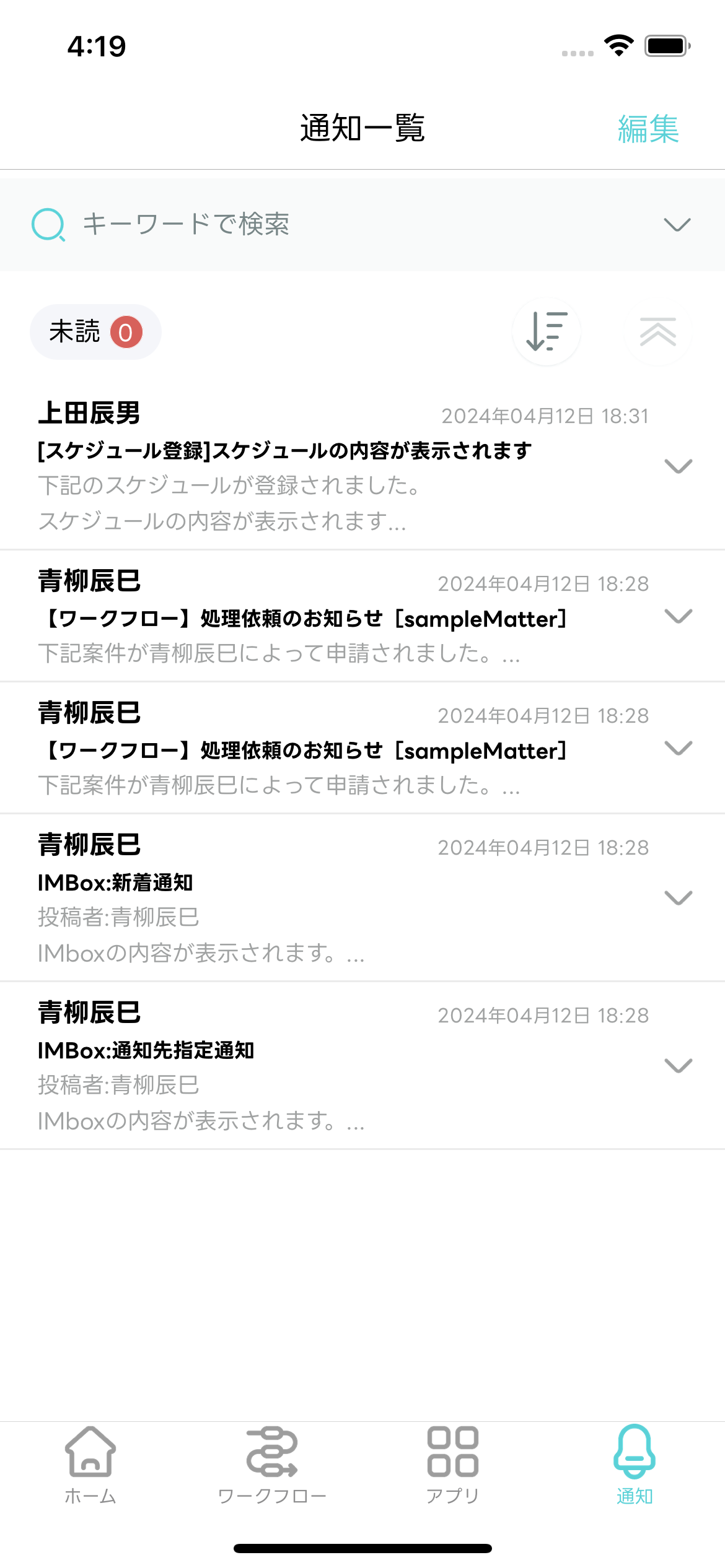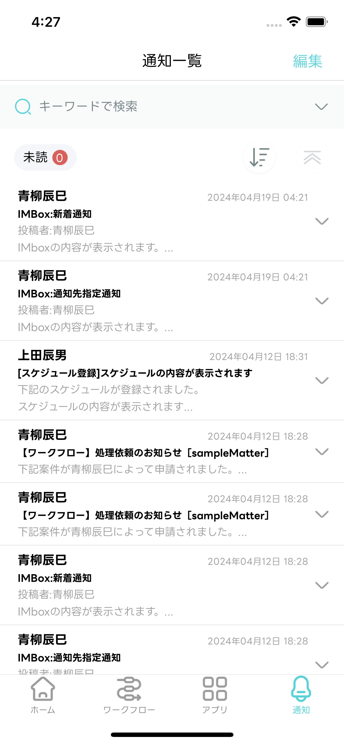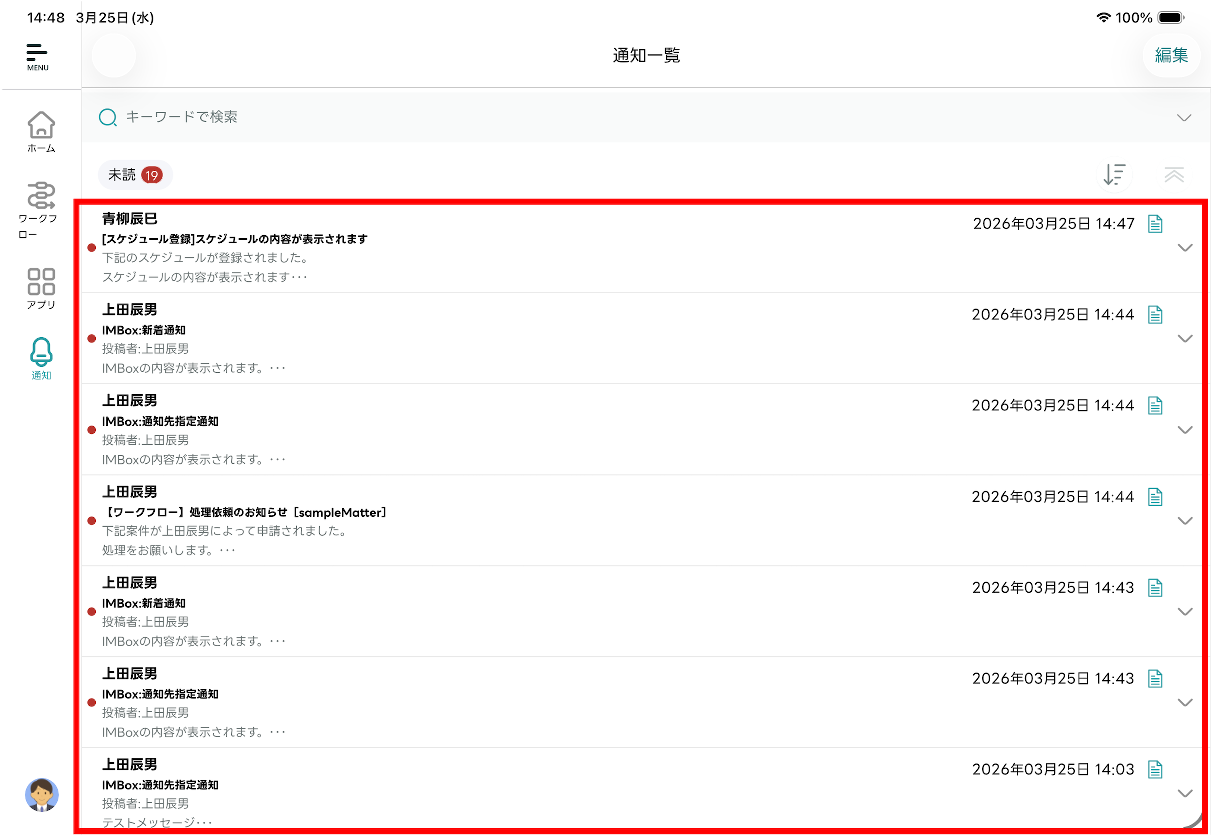 - 受信した通知を一覧で確認できます。
