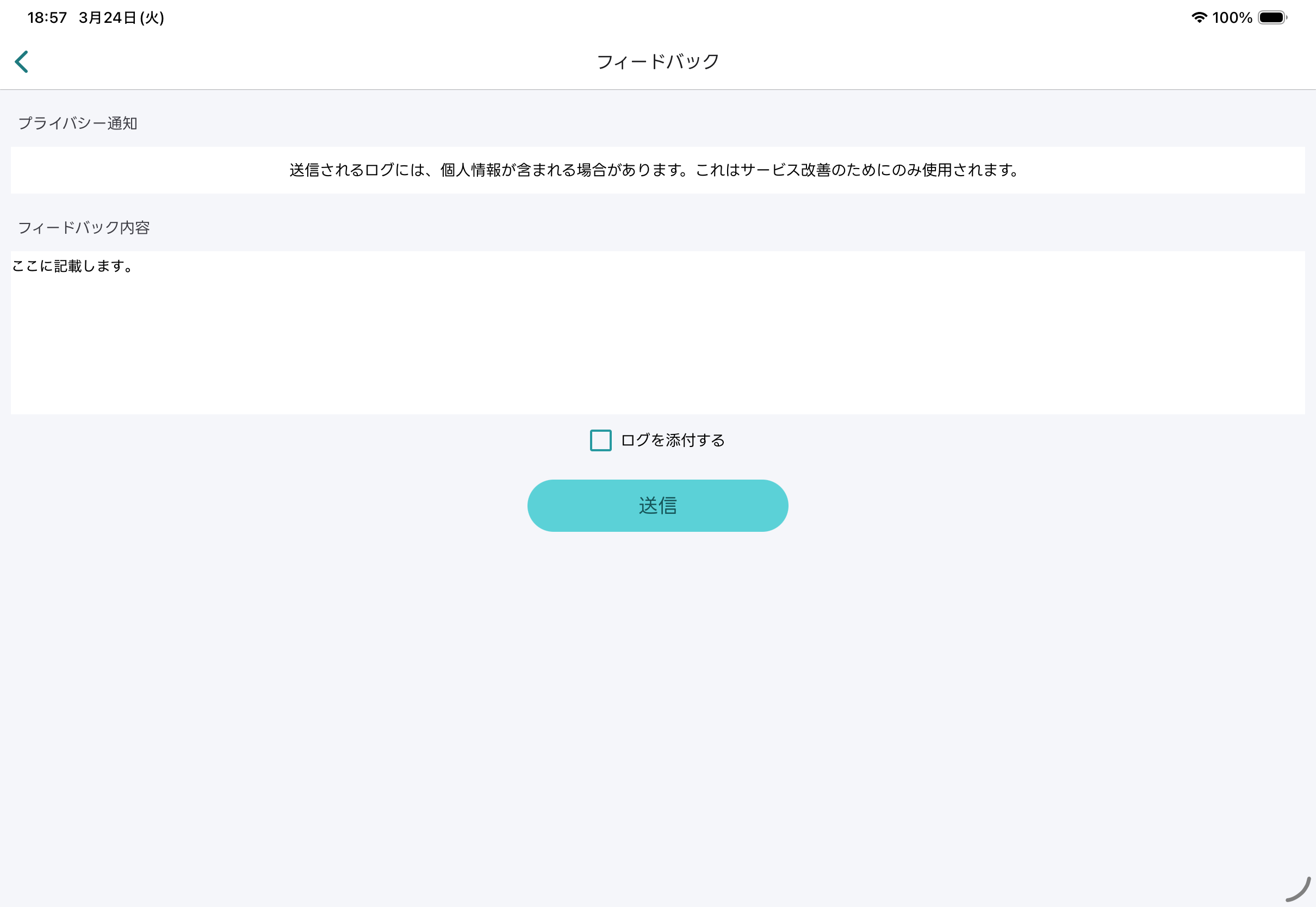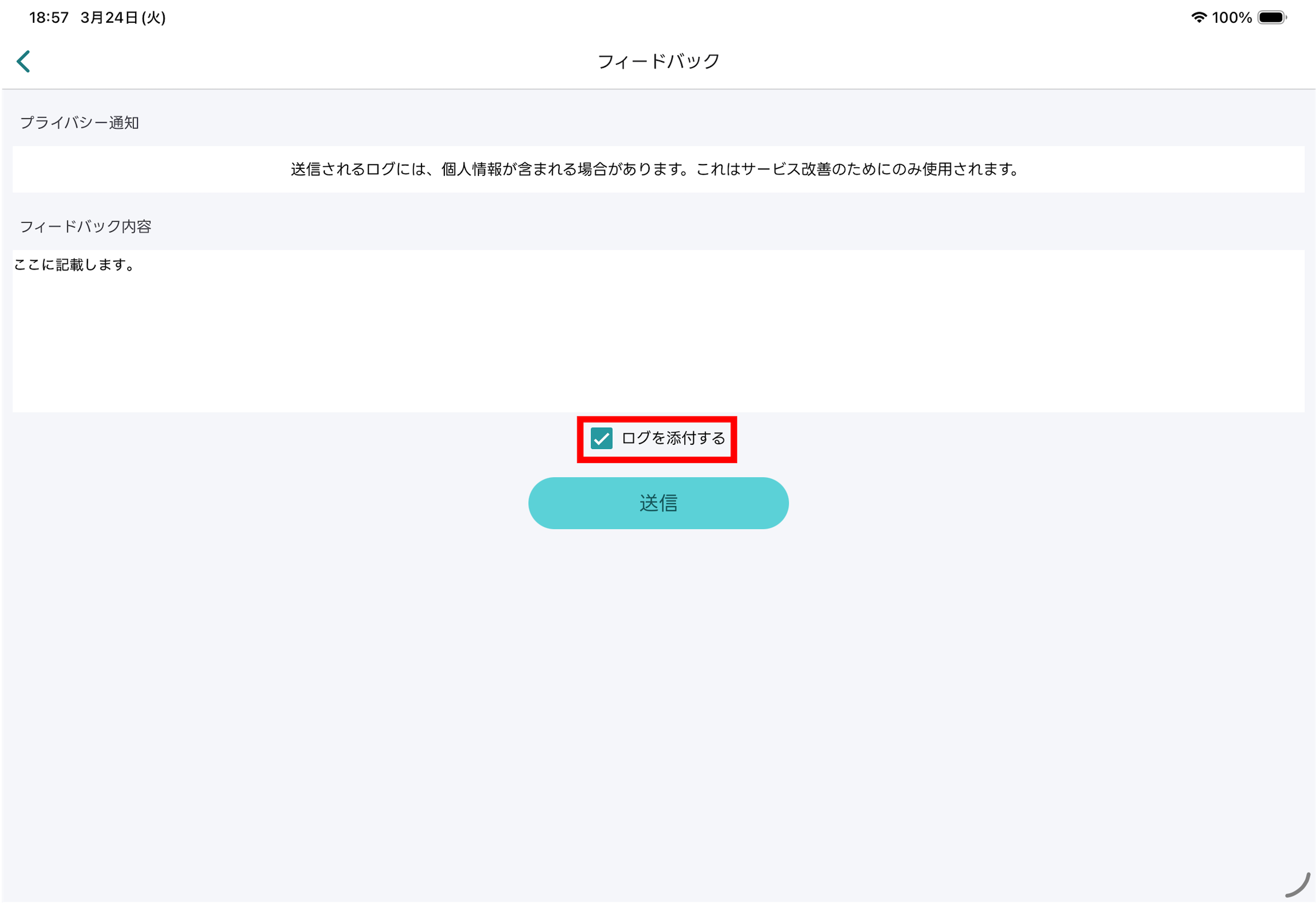 - ログを添付する場合は、「ログを添付する」のチェックボックスをオンにします。