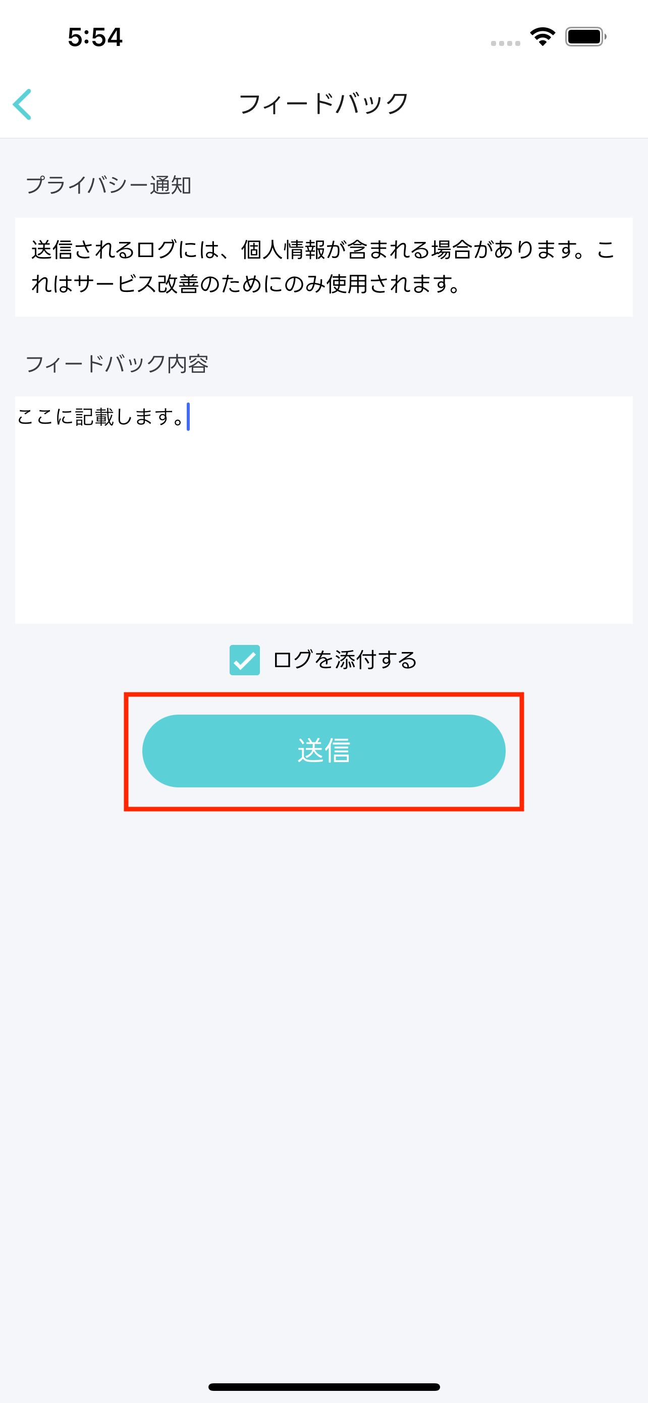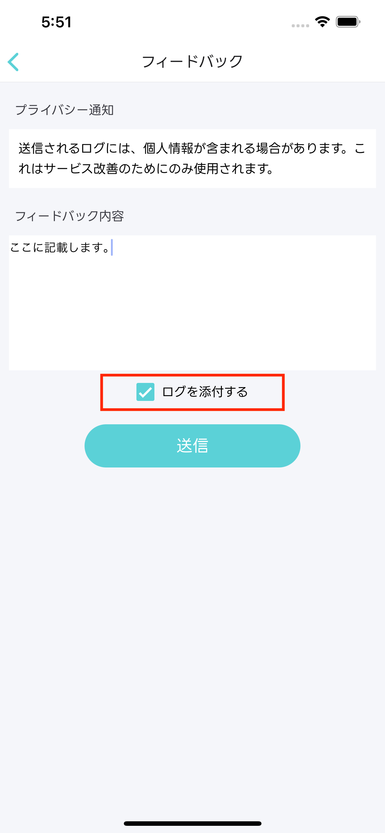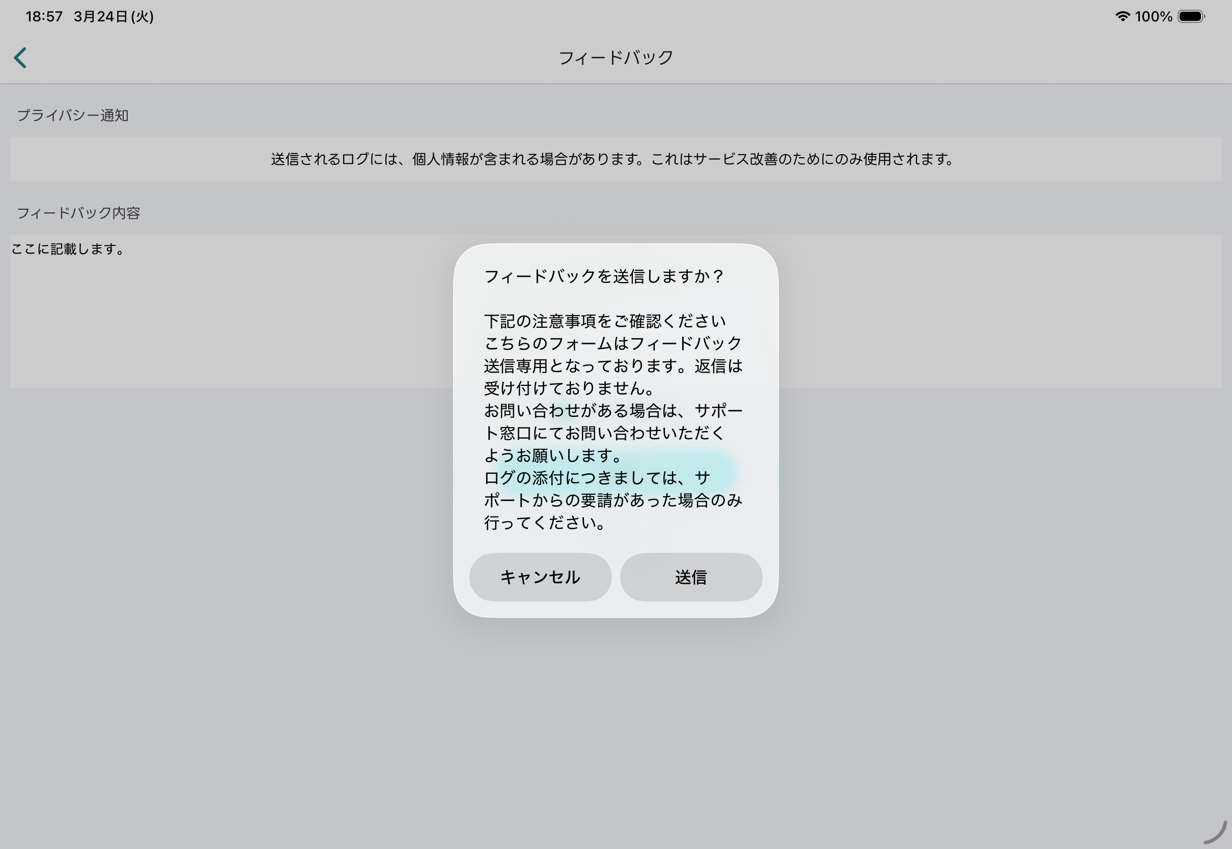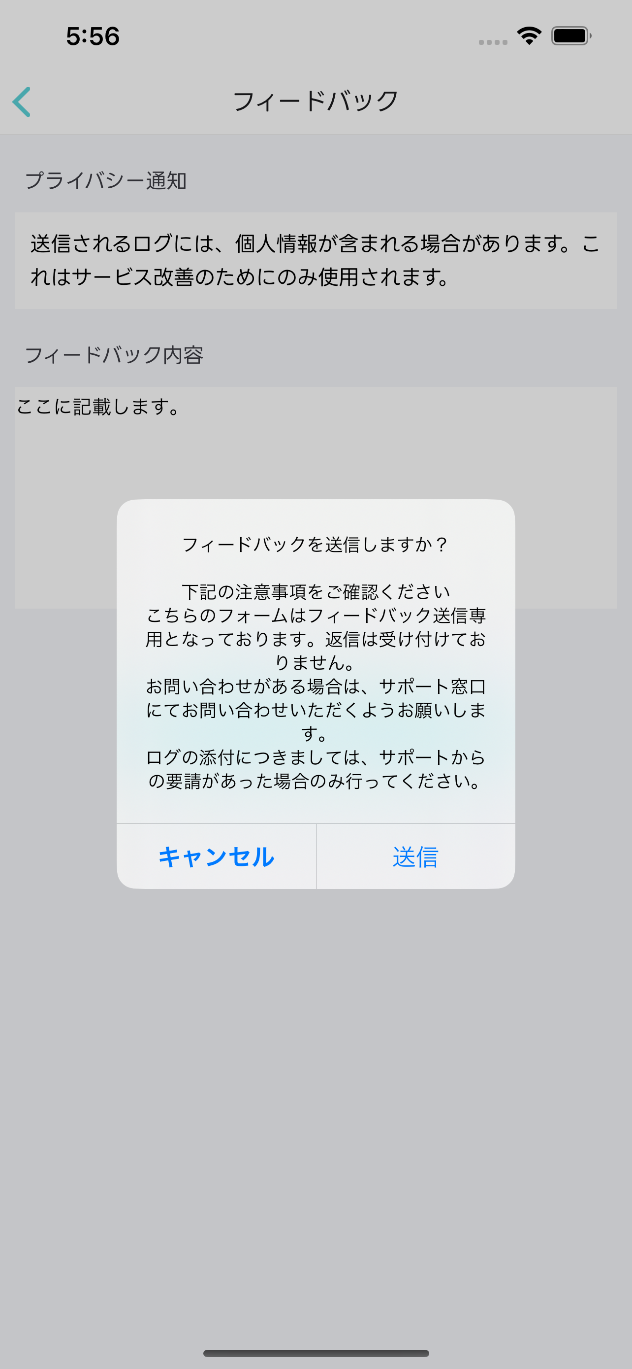 ログを送付する場合はサポートからの指示を受けた上で、フィードバックの内容を送信してください。コラム