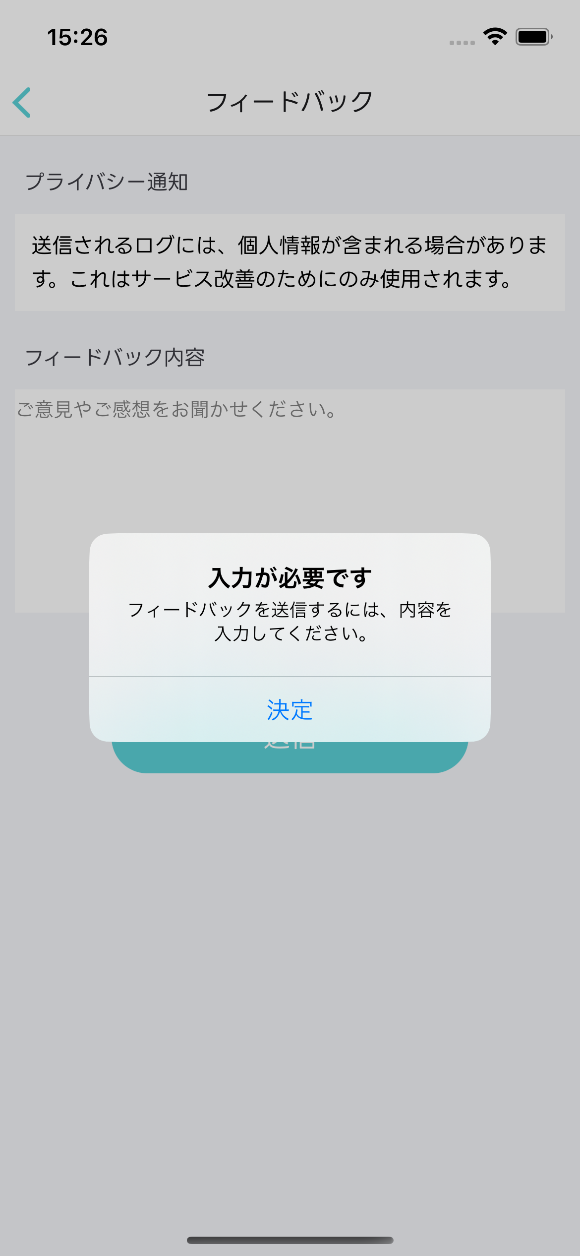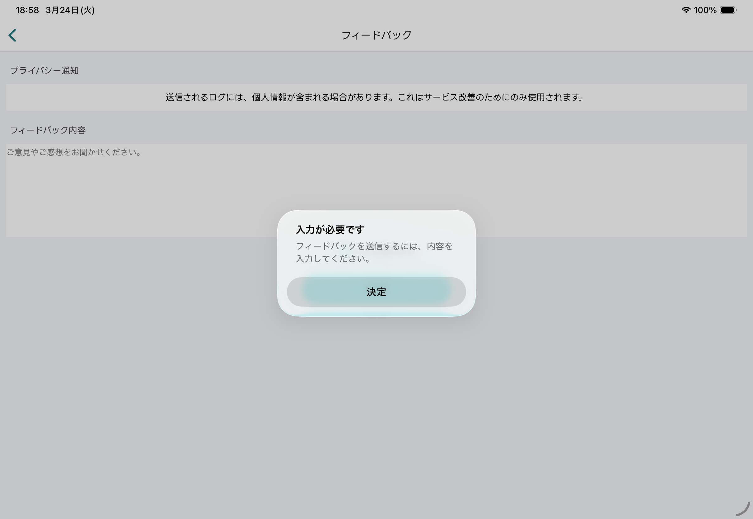 フィードバック画面は、ご意見・ご感想を送信するための専用画面です。