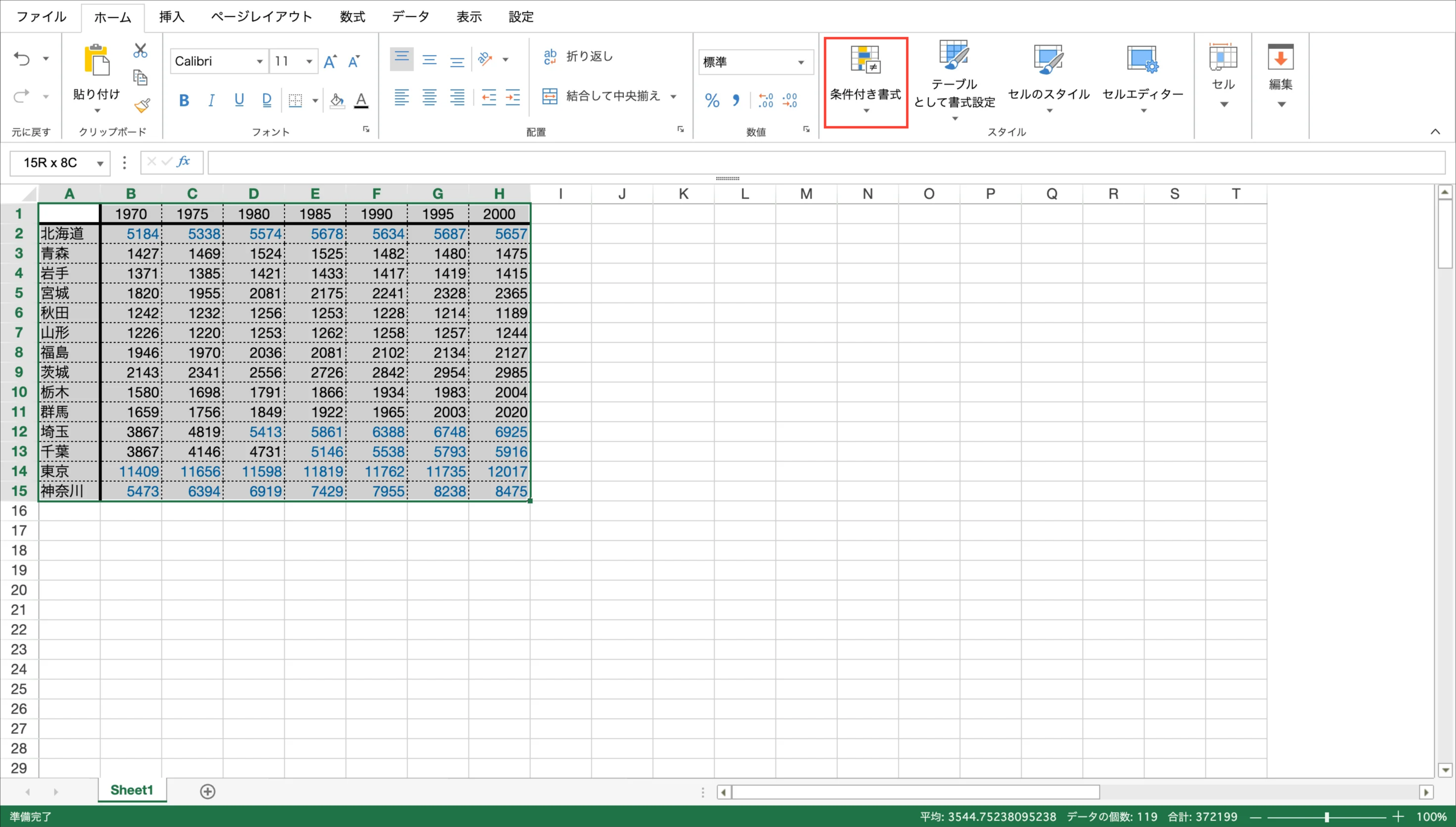 条件付き書式を使用することで、セルのデータを強調表示したり、パターンと傾向を特定できます。