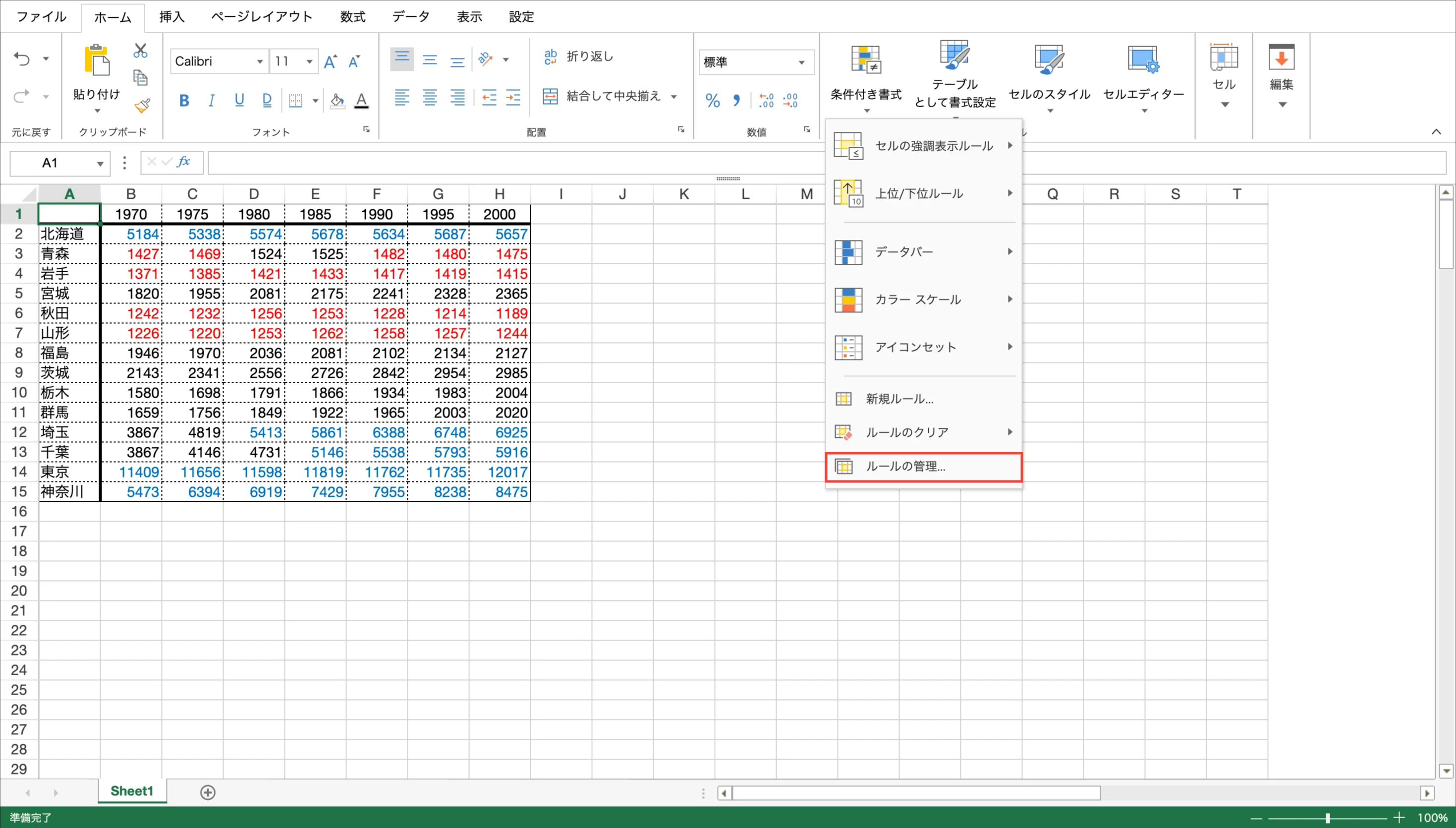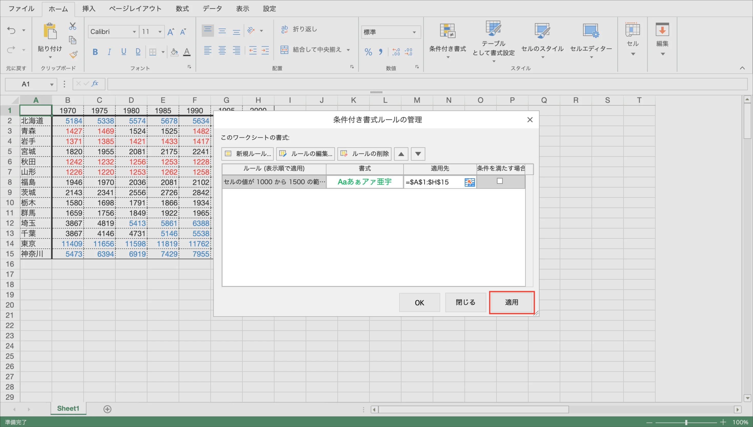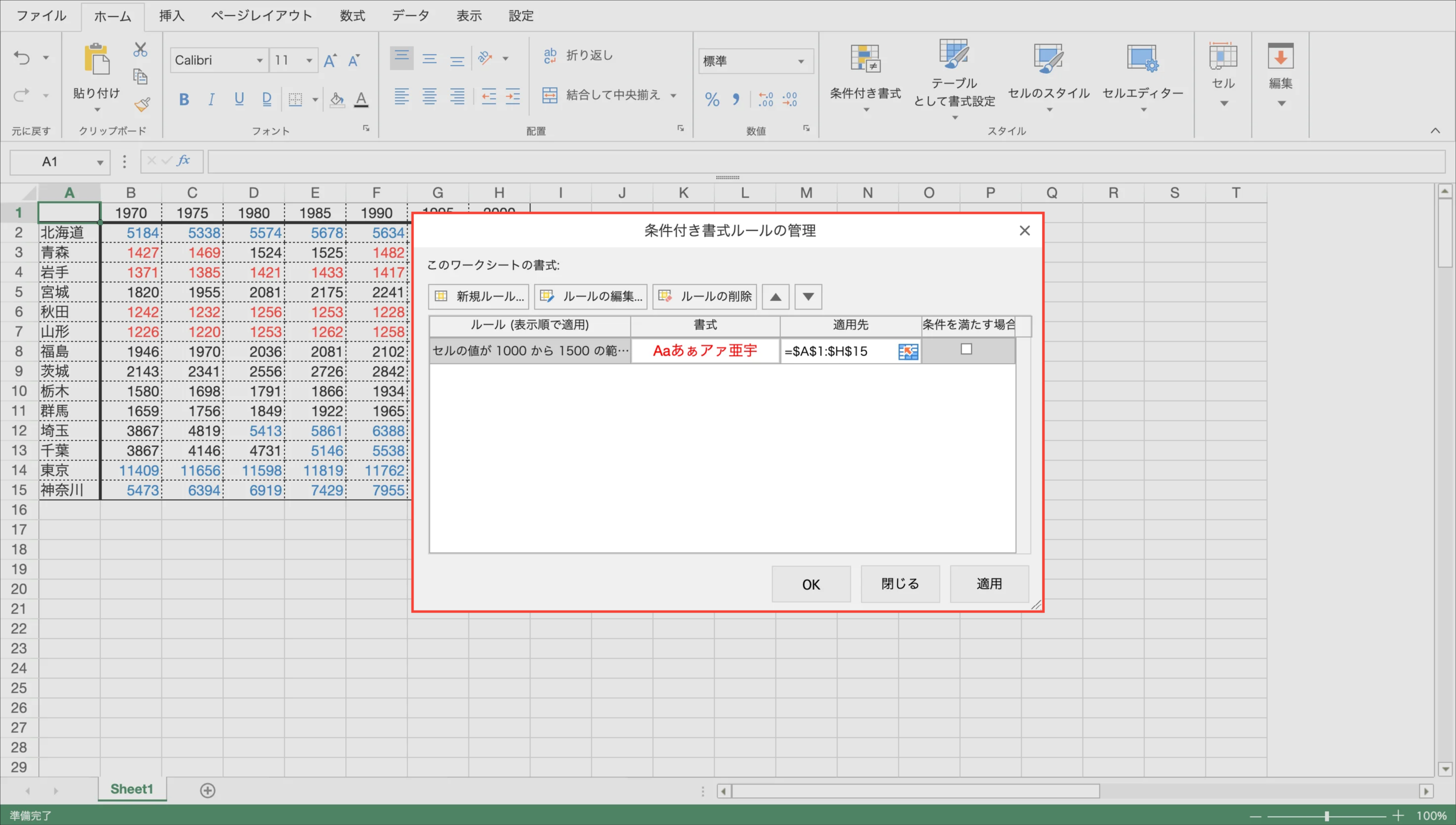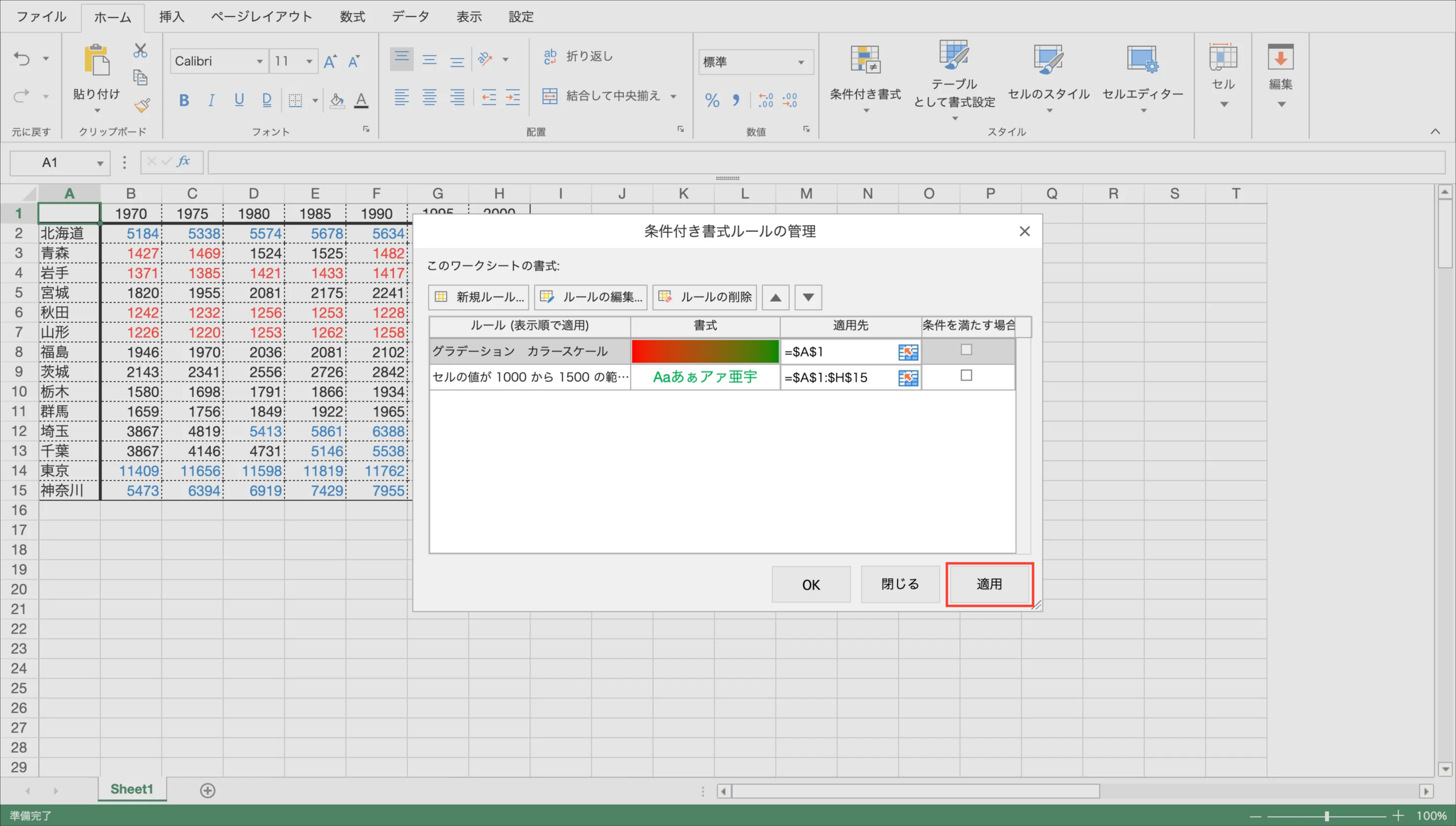 条件付き書式ルールの管理ダイアログより新規ルールボタンをクリックします。