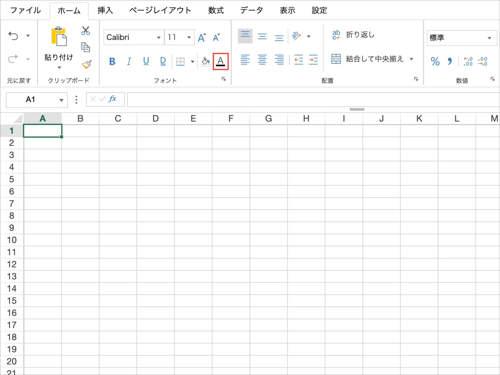 「ホーム」 - 「フォントの色」アイコンをクリックします。