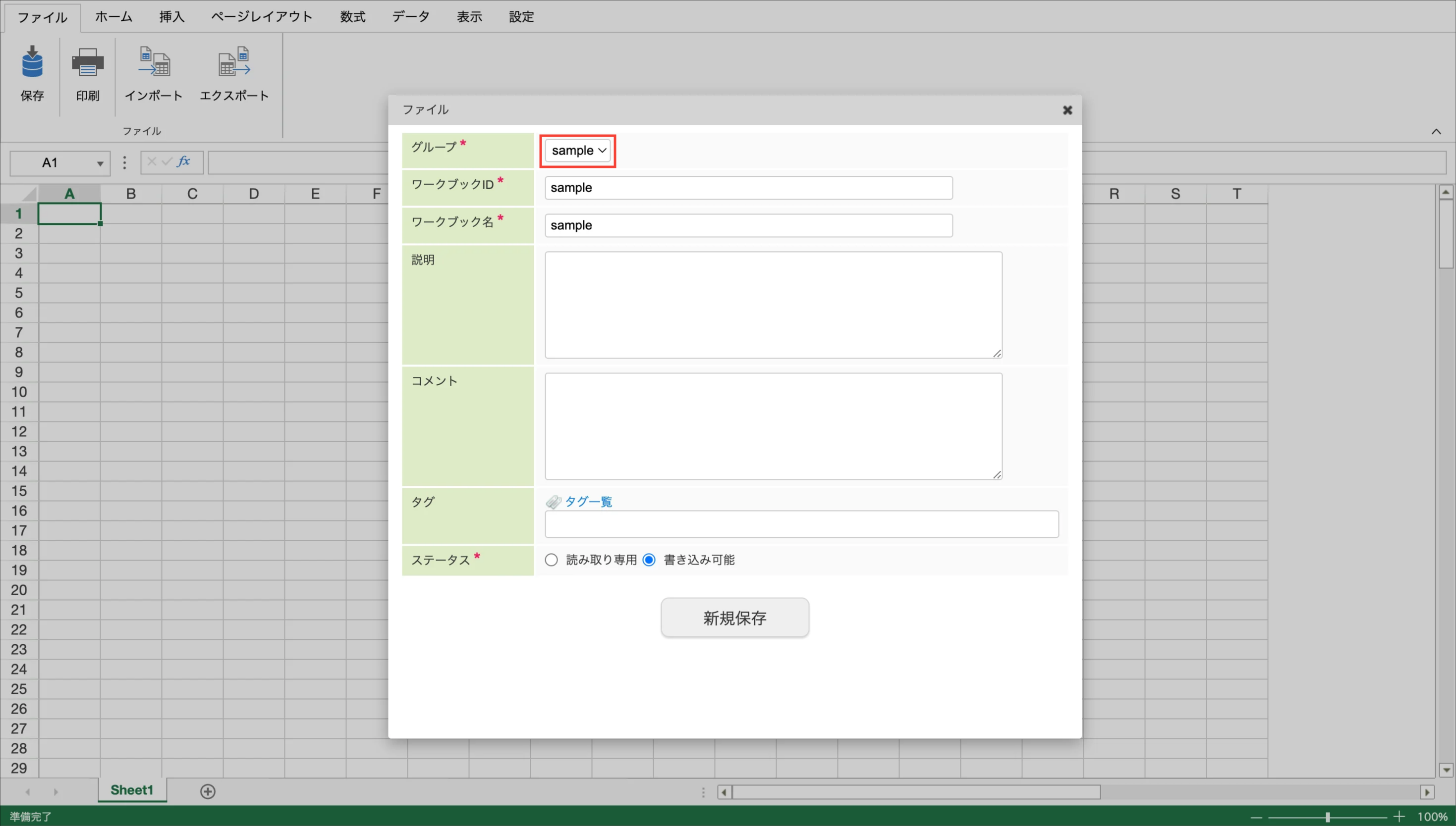 管理権限のあるグループを選択し、ワークブックを作成します。