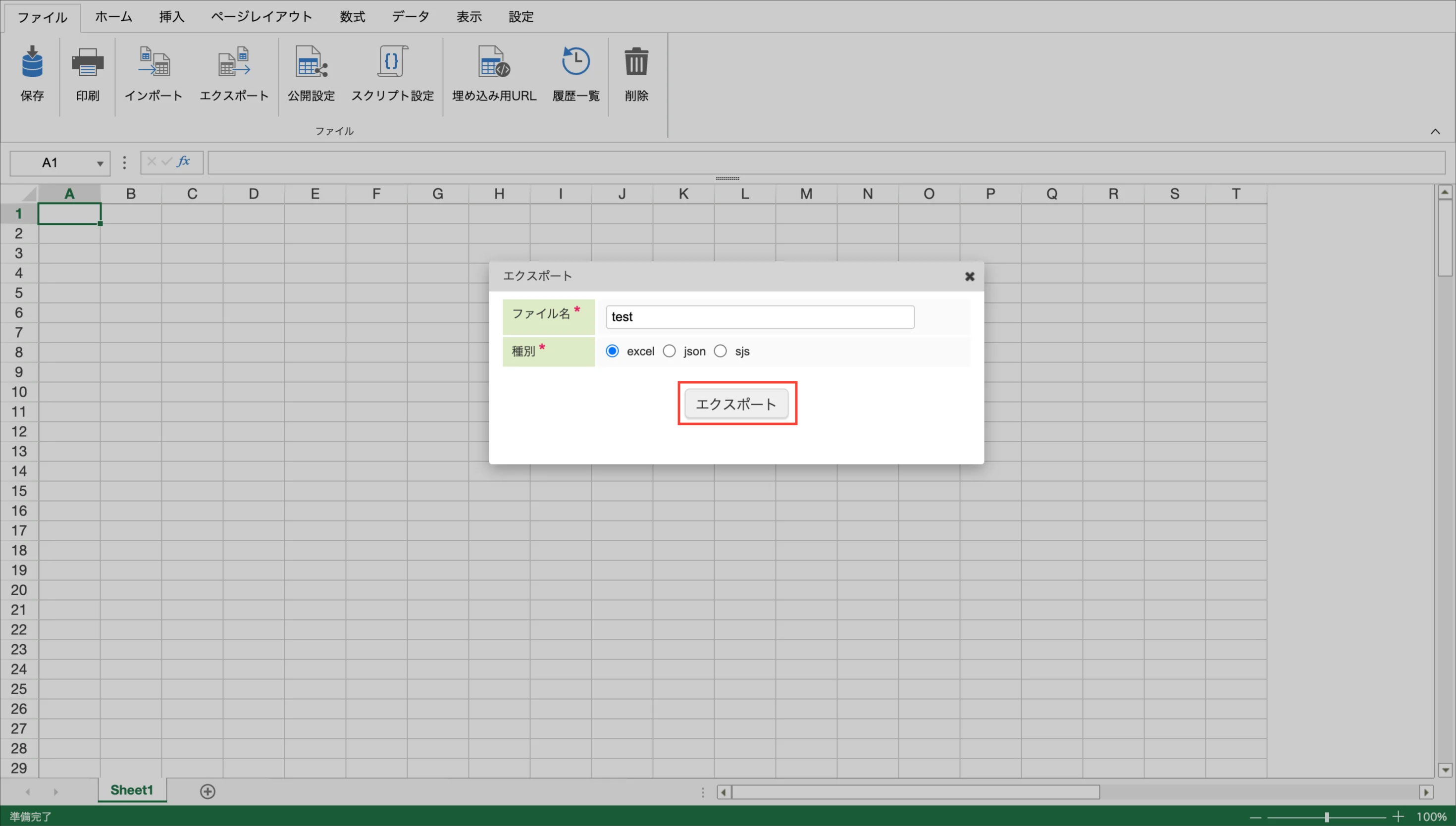 内容を入力し、「エクスポート」ボタンをクリックします。