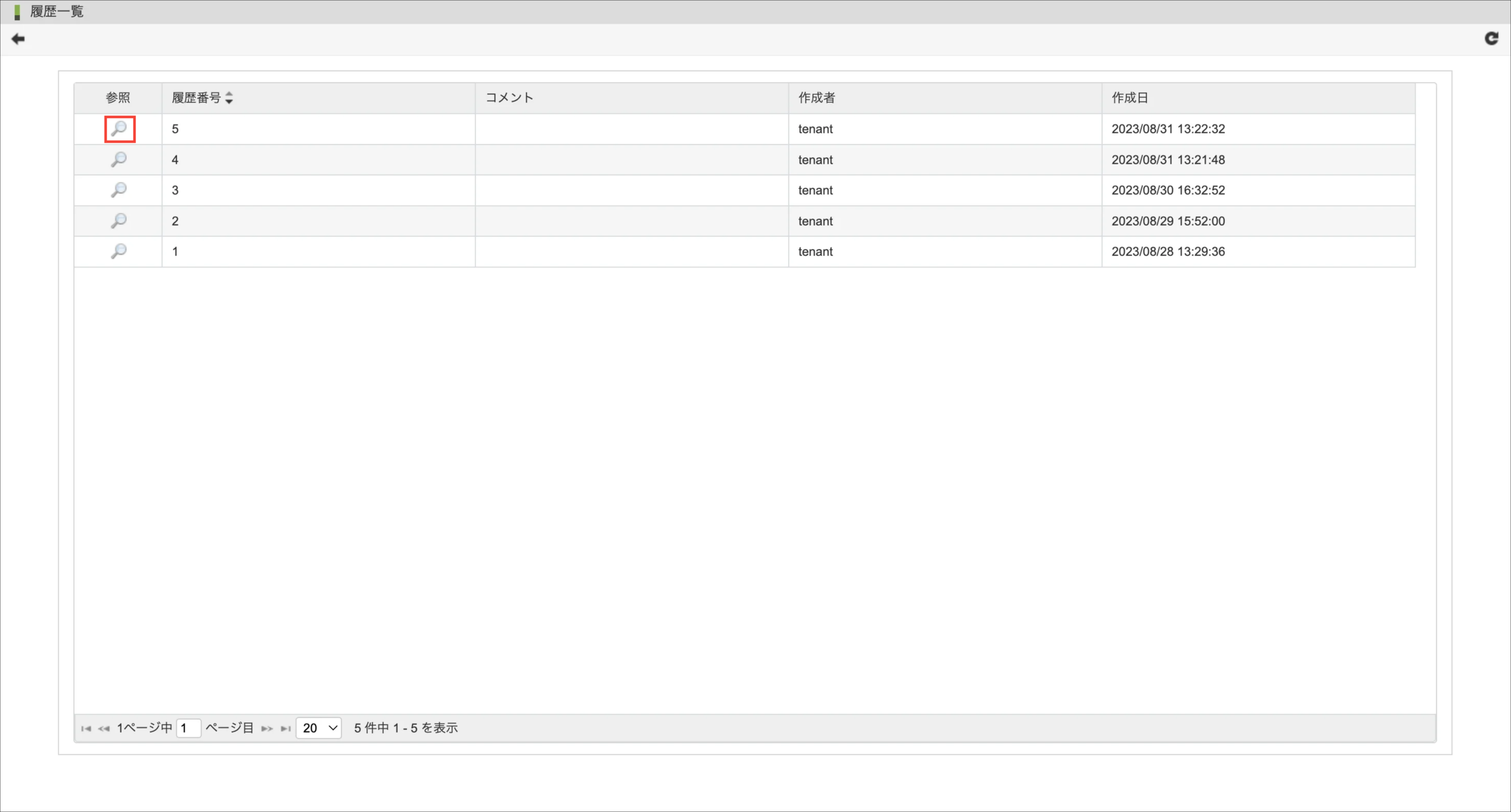 ソートをかける場合は、ソート条件として指定したい項目をクリックすることで実行できます。昇順または降順に切り替える場合も、項目を再度クリックして切り替えることができます。「参照」項目にある「虫眼鏡」アイコンをクリックします。