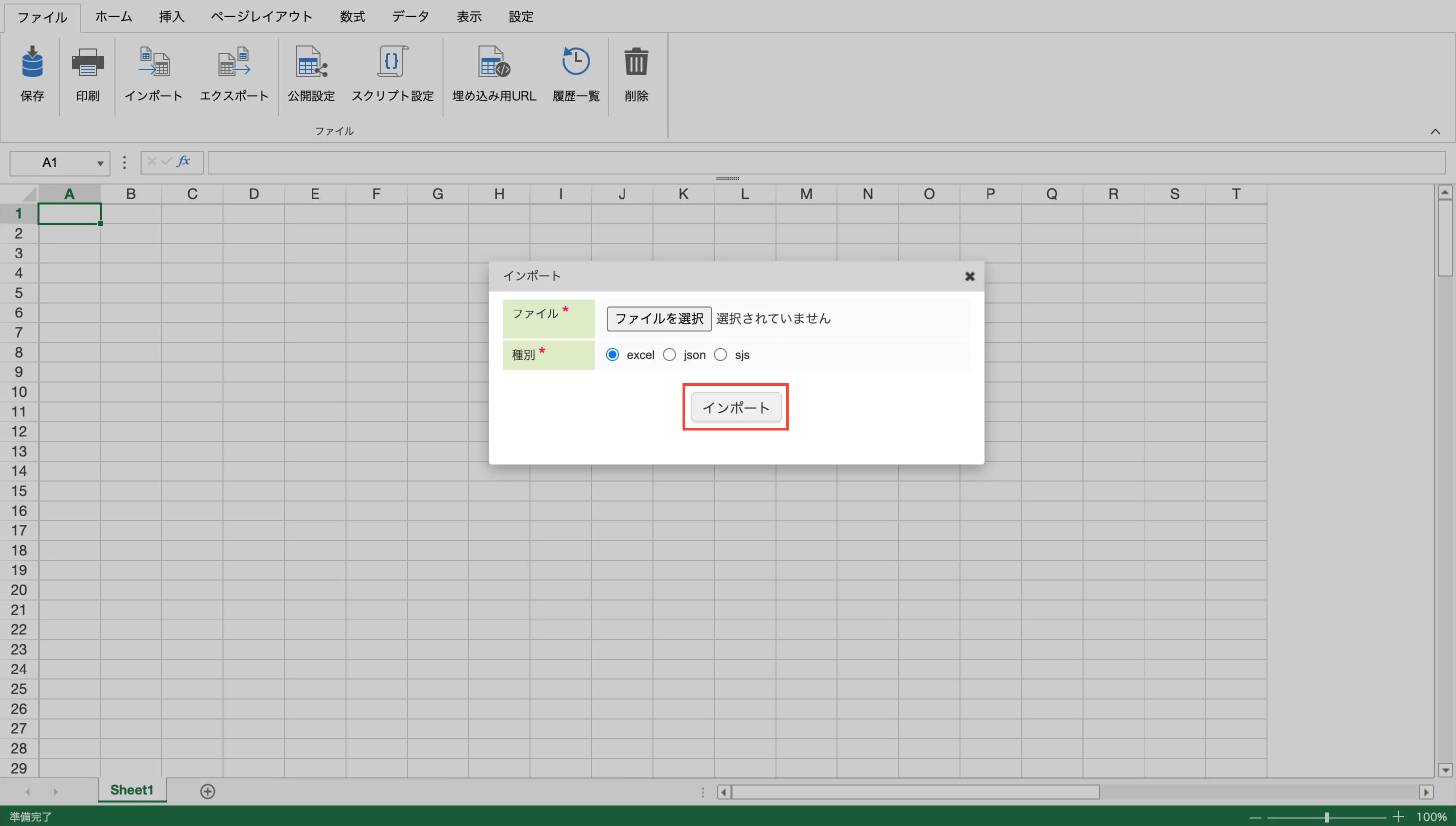 「ファイル」 - 「インポート」をクリックし、インポートダイアログを表示します。