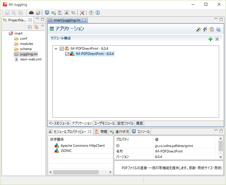 IM-Jugglingから、 IM-PDFDirectPrint for Accel Platform の選択を外し保存することで削除されます。