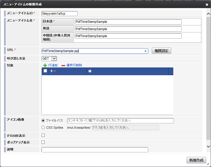 メニューで『PdfTimeStampSample』を選択してください。作成したJSPファイルが実行されます。