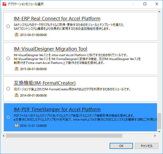 IM-Juggling で利用するアプリケーションを選択する際に、「 IM-PDFTimeStamper for Accel Platform 」を指定します。