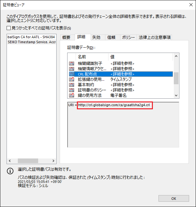 表示されるURLが、CRL配布点のURLです。