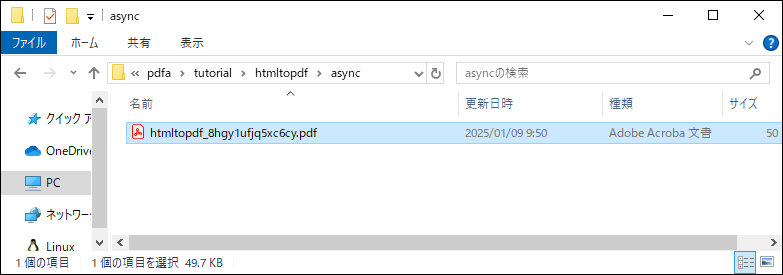プログラムが実行され、< %PUBLIC_STORAGE_PATH% /pdfa/tutorial/htmltopdf/async >にPDFファイルが出力されます。