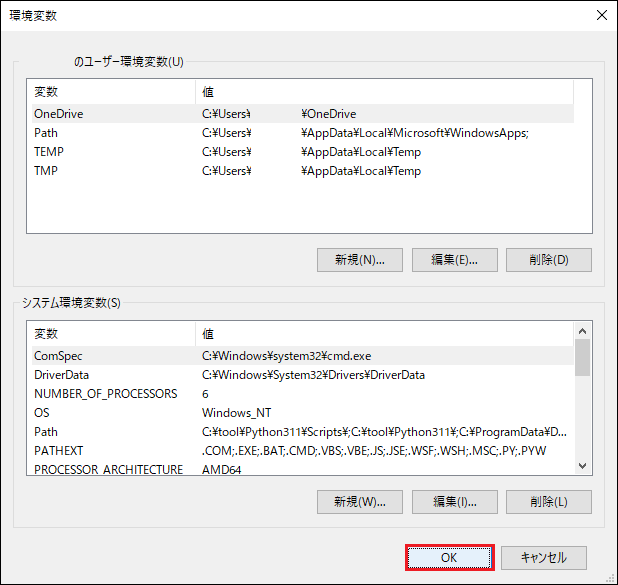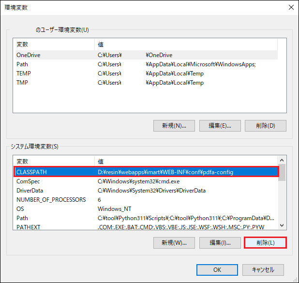 上記以外の変数値がCLASSPATHに設定されている場合、CLASSPATH自体は削除せず、上記変数値のみ削除してください。