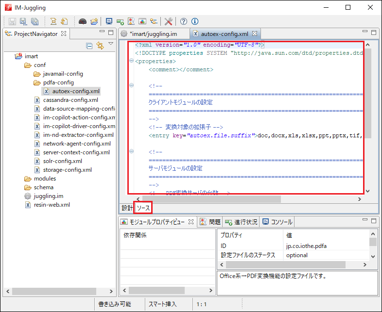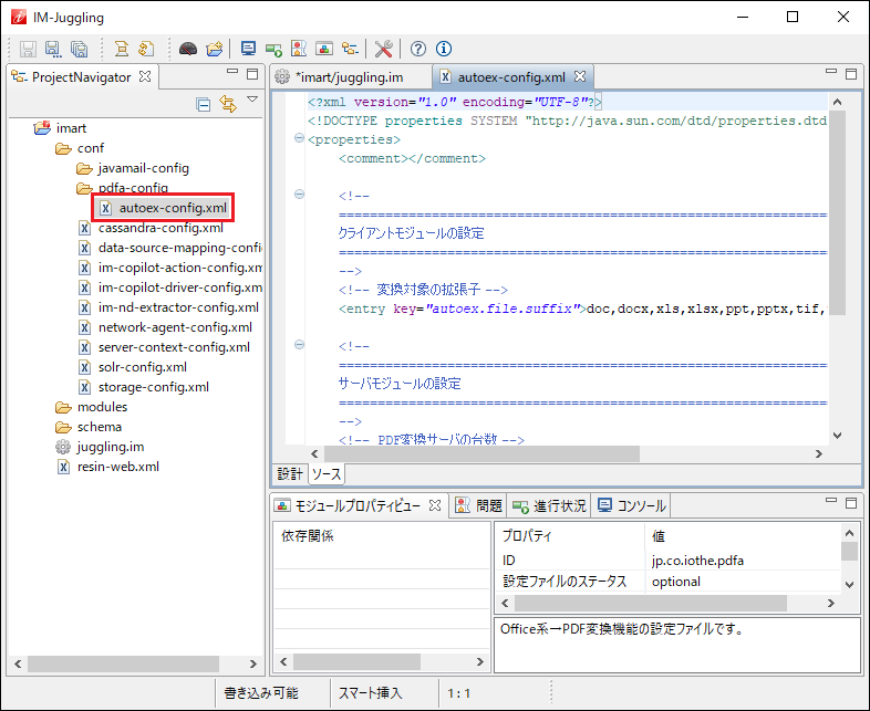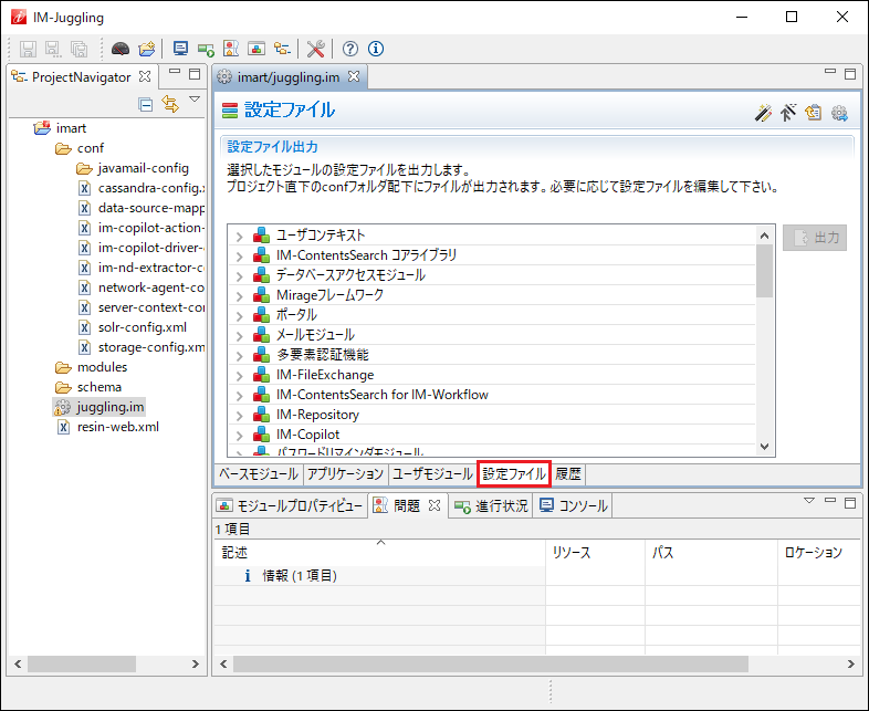 IM-Juggling でプロジェクトを開き、「設定ファイル」タブを表示します。