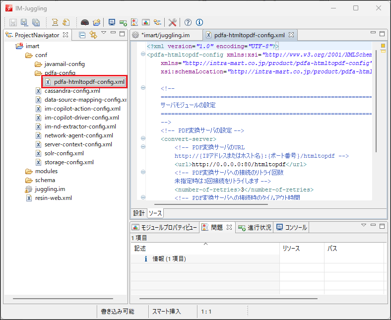 HTML→PDF変換 の設定ファイル< pdfa-htmltopdf-config.xml >を追加し、編集する手順を示します。