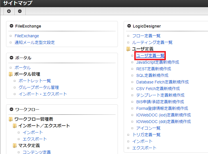 次の手順で「 IOWebDOC (iod)編集 」画面を表示します。