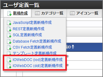 「ユーザ定義一覧」画面の作成可能なユーザ定義の一覧