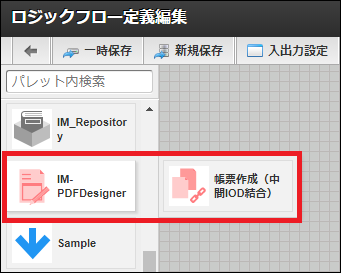 FullPack版 IM-LogicDesigner 連携 は、 IM-LogicDesigner 上でPDF帳票の出力処理を作成するためのアプリケーションです。