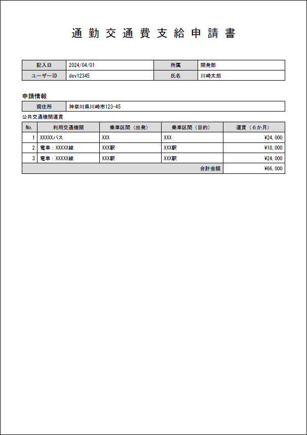 通勤交通費支給申請書 |