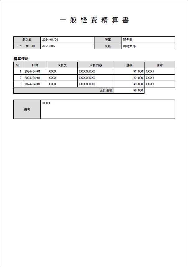 一般経費精算書 |