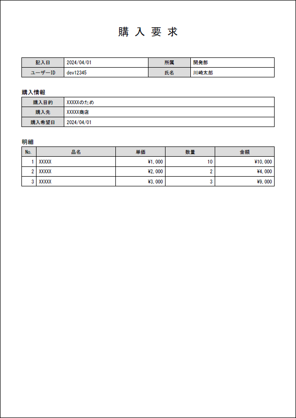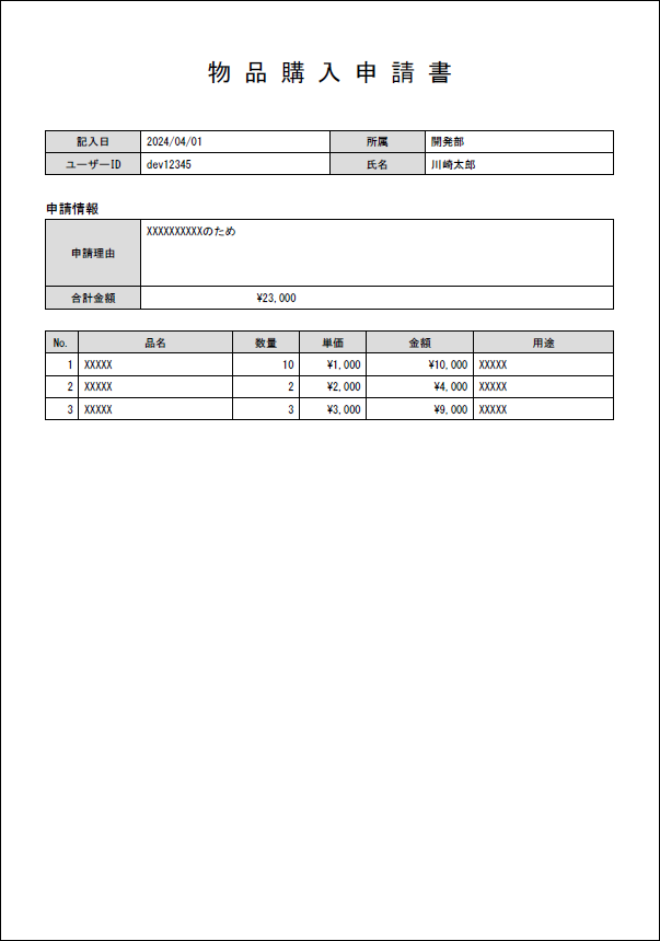物品購入申請書 |